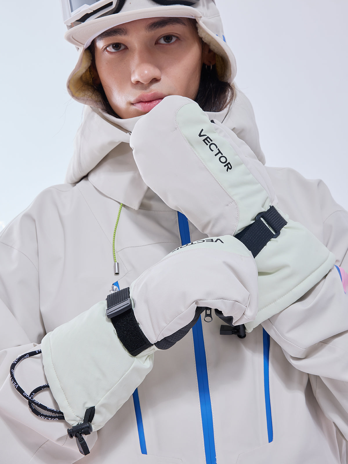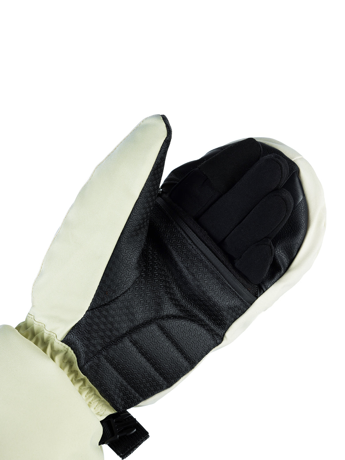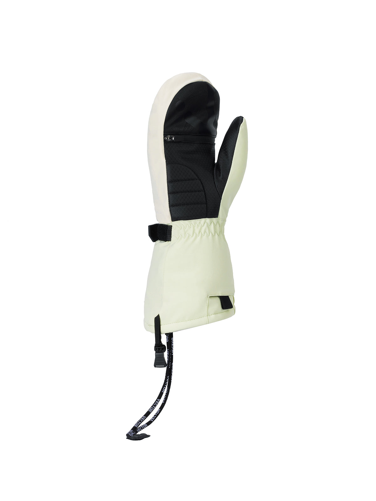 These mittens are built to withstand tough conditions without compromising comfort. The palm area is reinforced with high-quality Kevlar® fibers, making it cut-resistant and highly durable. Filled with 100g/m² 3M™ Thinsulate™, they’re lightweight, warm, and quick-drying, providing 1.5 times the warmth of down. Designed with a half-detachable palm and a separate inner liner, these mittens are versatile and adaptable. The liner thumb area has a soft fabric for easy goggle cleaning, and a removable anti-shock fiber plate inside helps reduce injury risk during intense carving on the slopes.