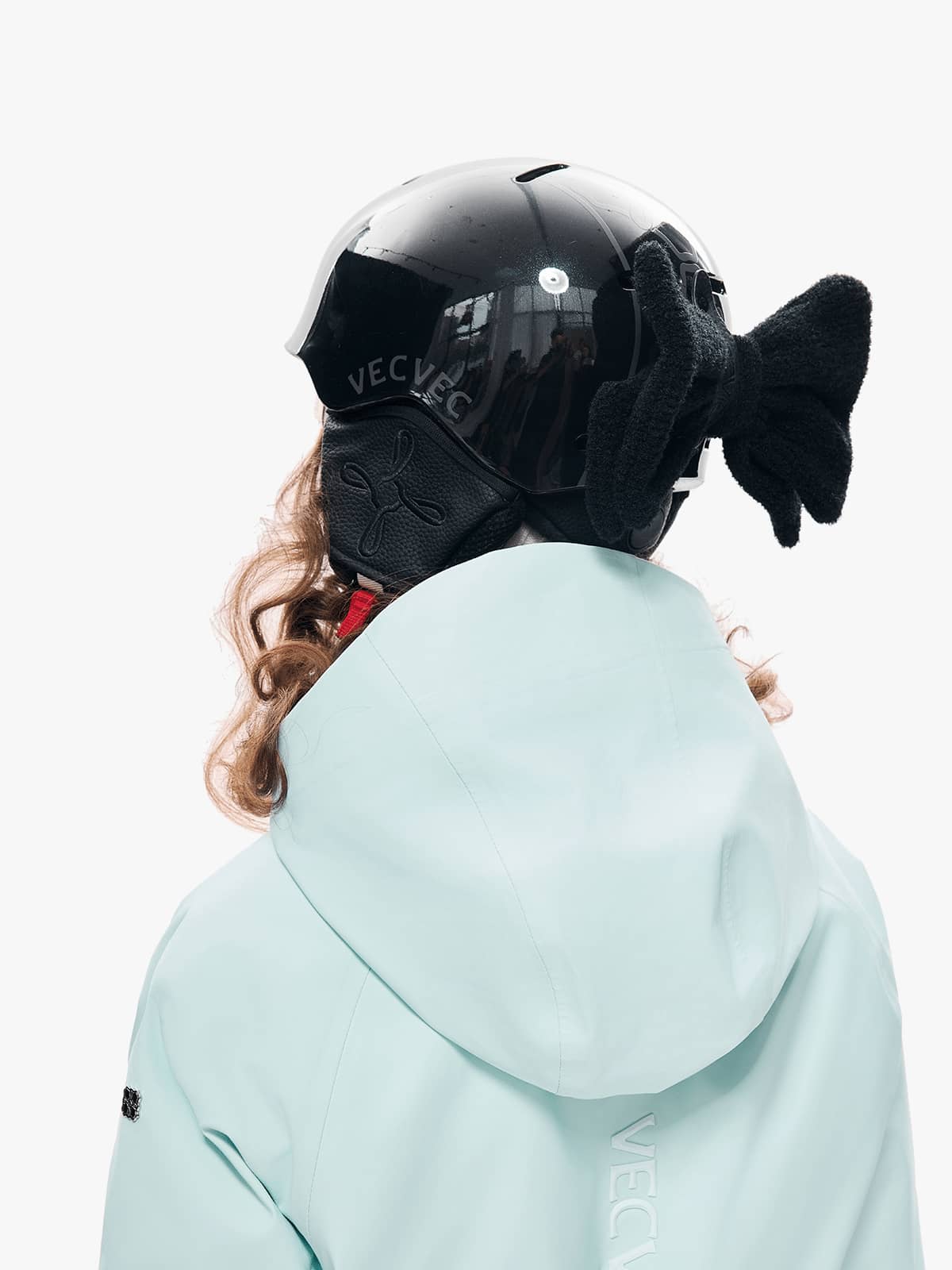 3D bow detail (front) mimics playful cat ears, featuring a dual-layer construction – structured upper for shape retention + sheer lower layer for fluid movement, adding whimsical flair to ski outfits.