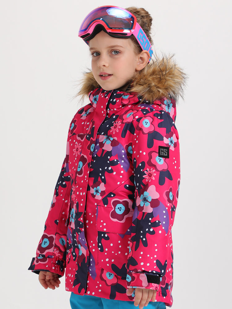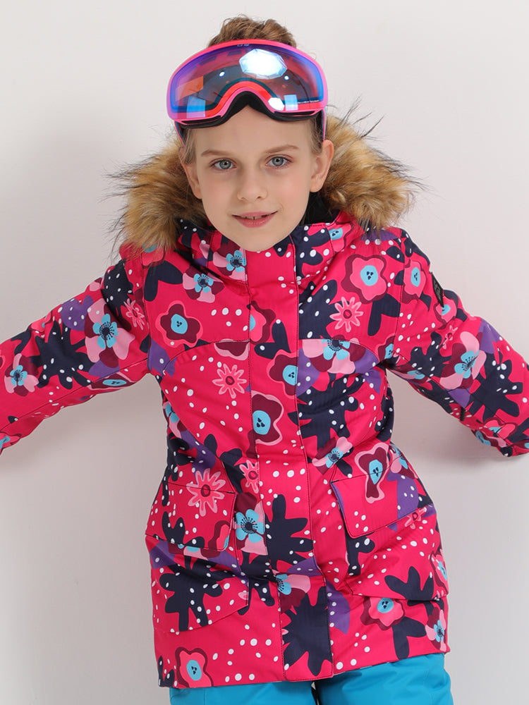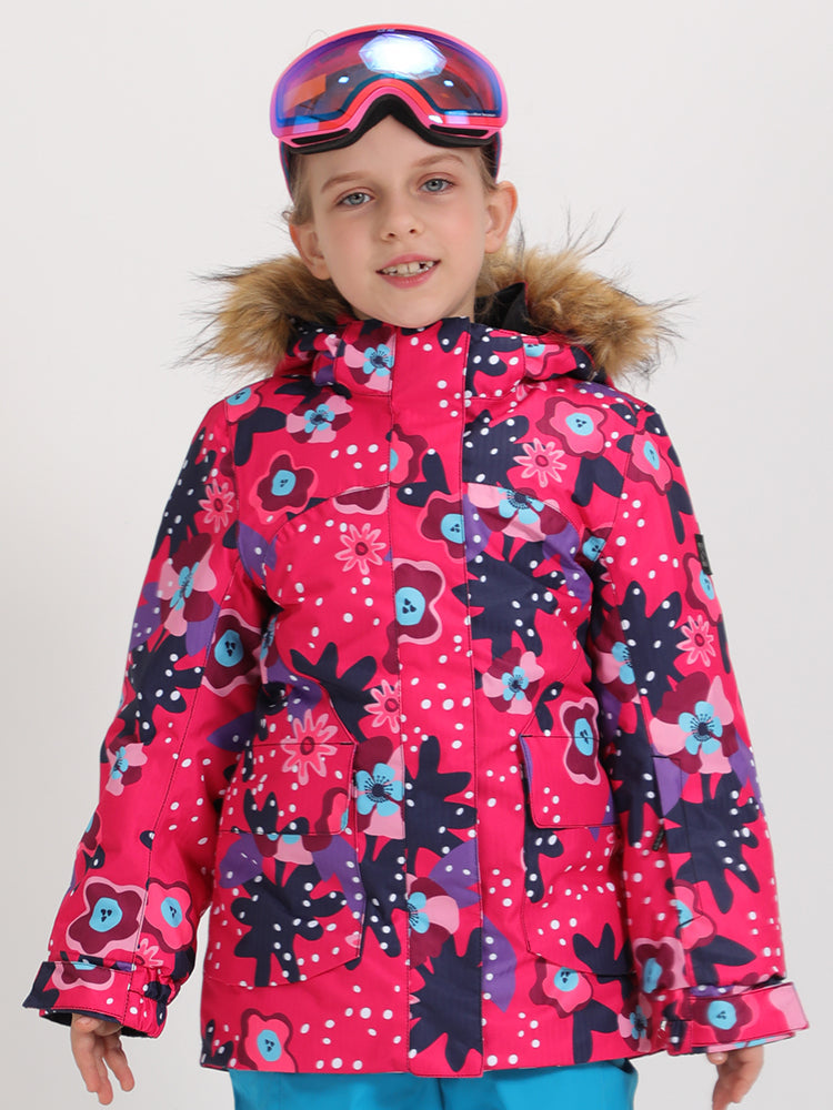 Jaqueta de snowboard Gsou Snow amb flors vermelles per a nens