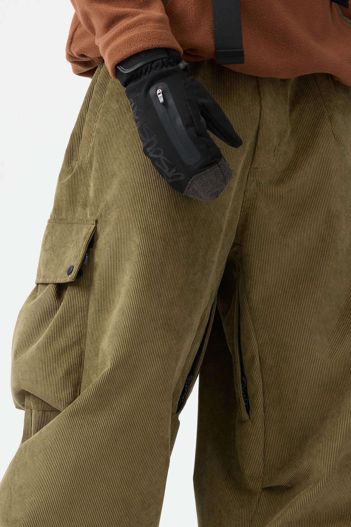 Crafted from unique corduroy fabric, these pants offer a retro style with softness and warmth. Featuring water- and wind-resistant linings at the waistband and cuffs, along with zippered thigh vents for quick heat release, they combine style with excellent protection.