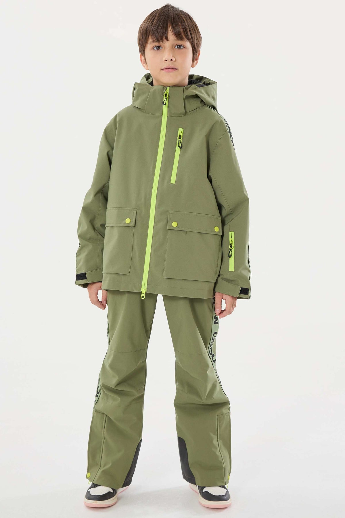 Pantalons de neu aïllats verd militar amb tirants per a nens