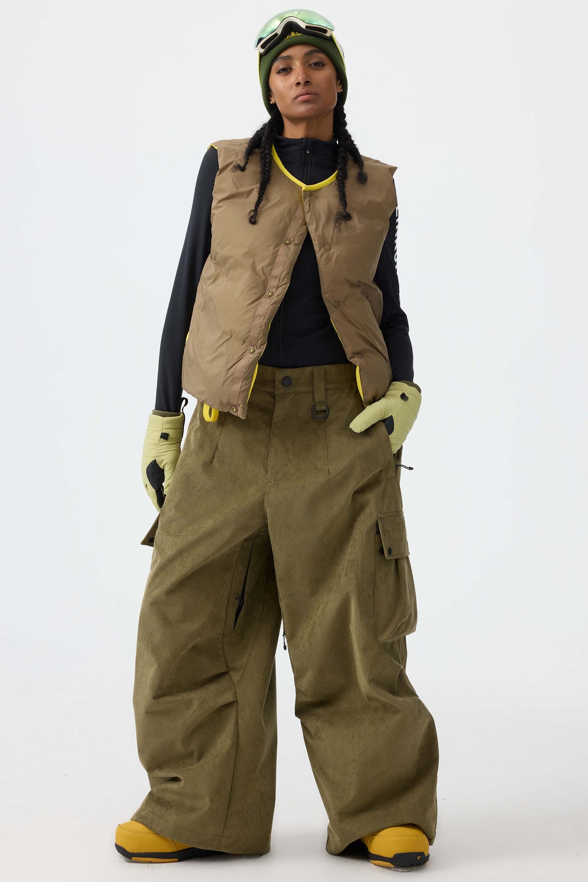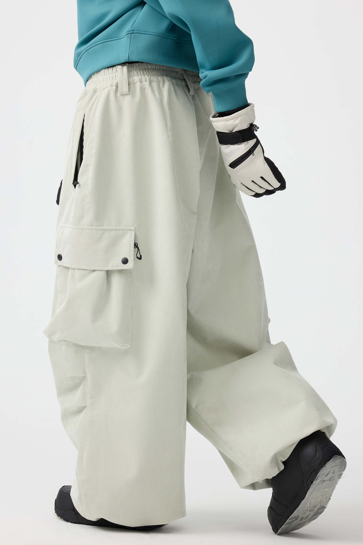 Crafted from unique corduroy fabric, these pants offer a retro style with softness and warmth. Featuring water- and wind-resistant linings at the waistband and cuffs, along with zippered thigh vents for quick heat release, they combine style with excellent protection.