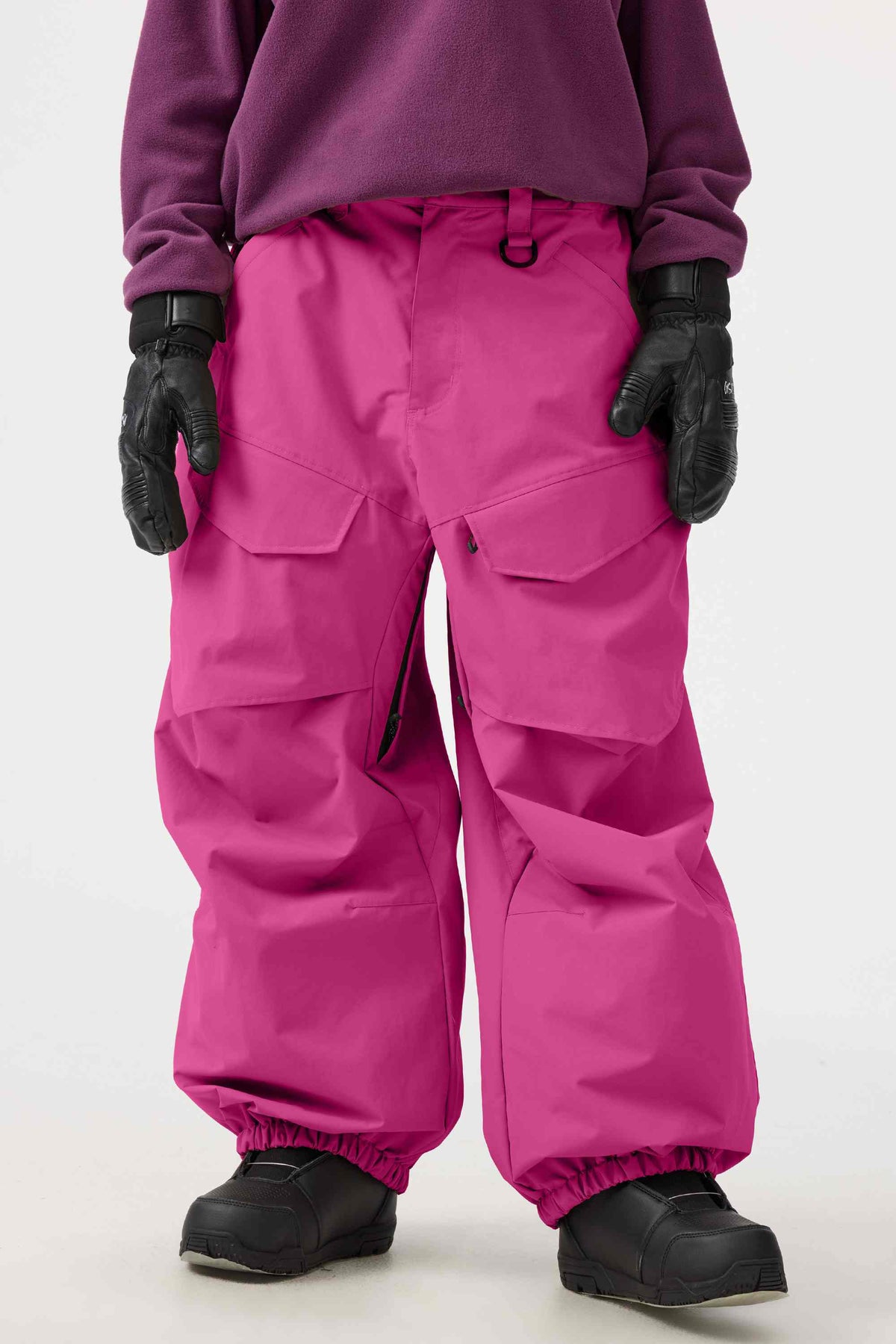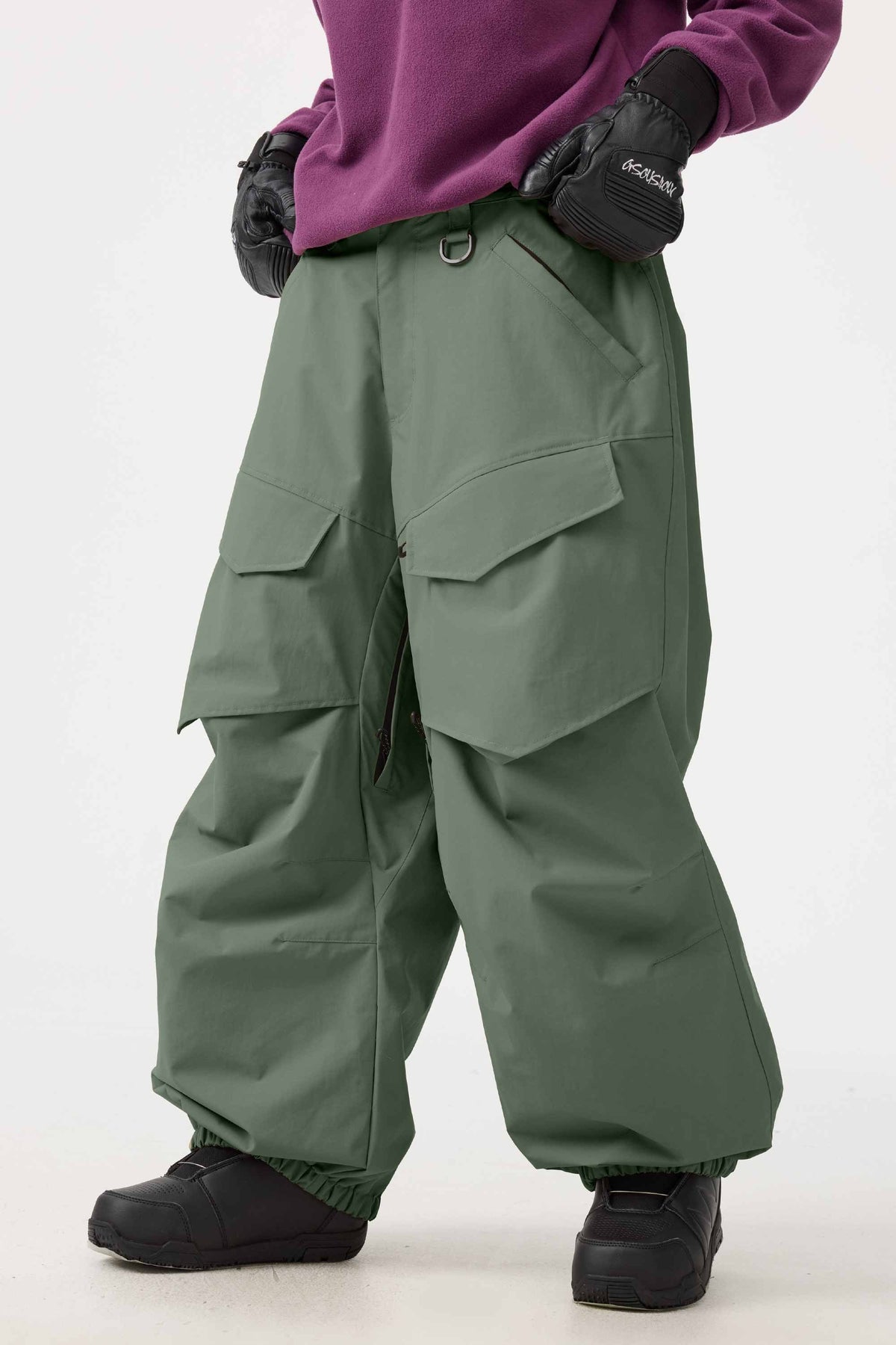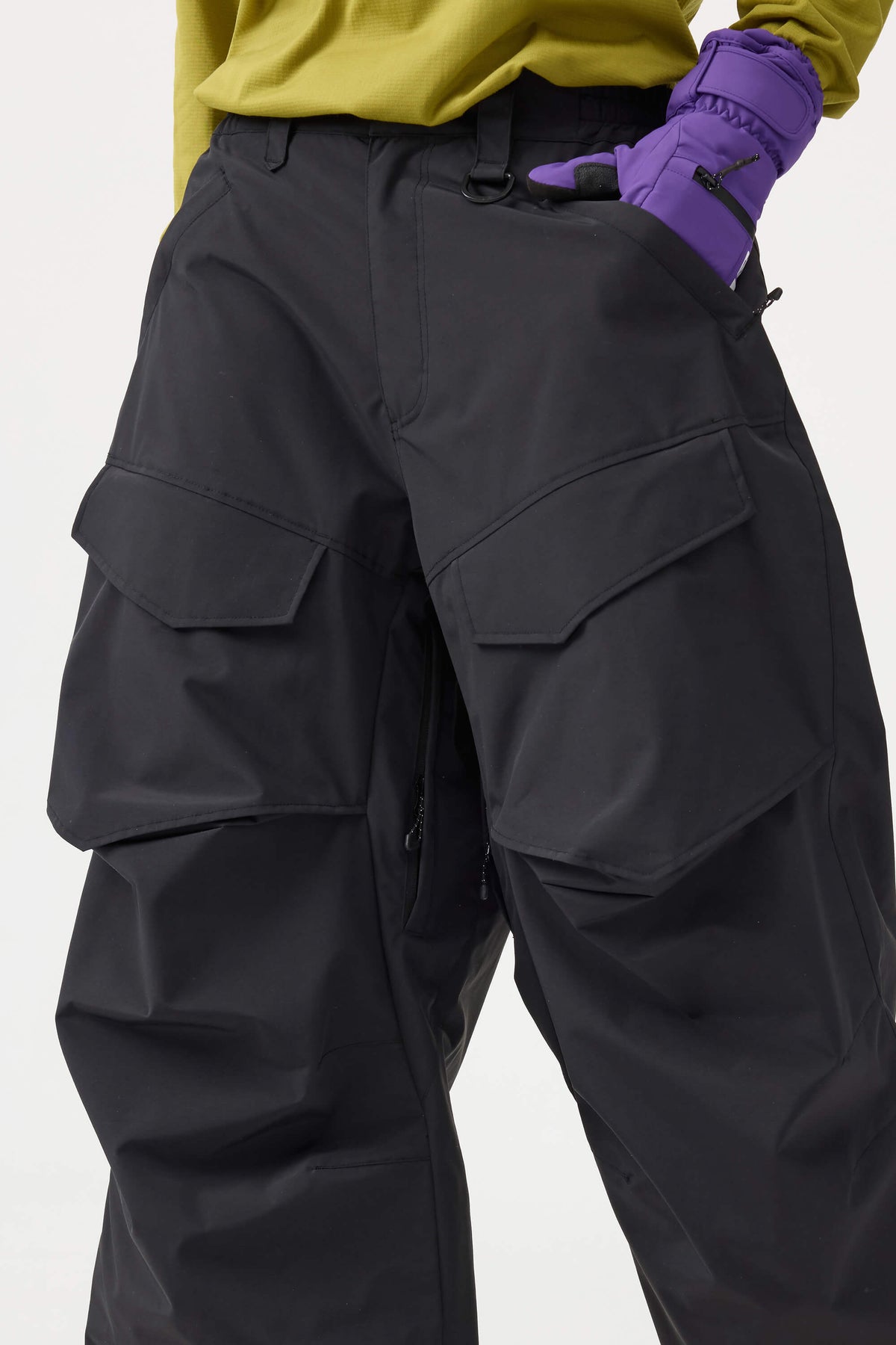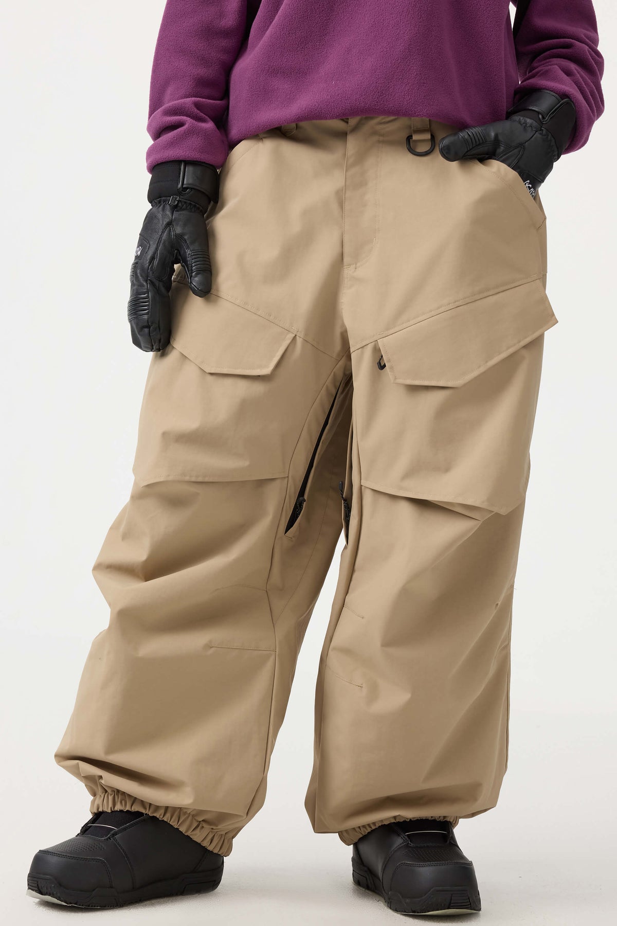 Crafted with advanced nylon weaving and a water-resistant coating, these pants offer superior abrasion resistance and long-lasting durability. With a next-gen silicone anti-slip powder skirt, they ensure a snug, windproof seal that keeps you warm while rocking a baggy look. Four large pockets and key hook provide added practicality.