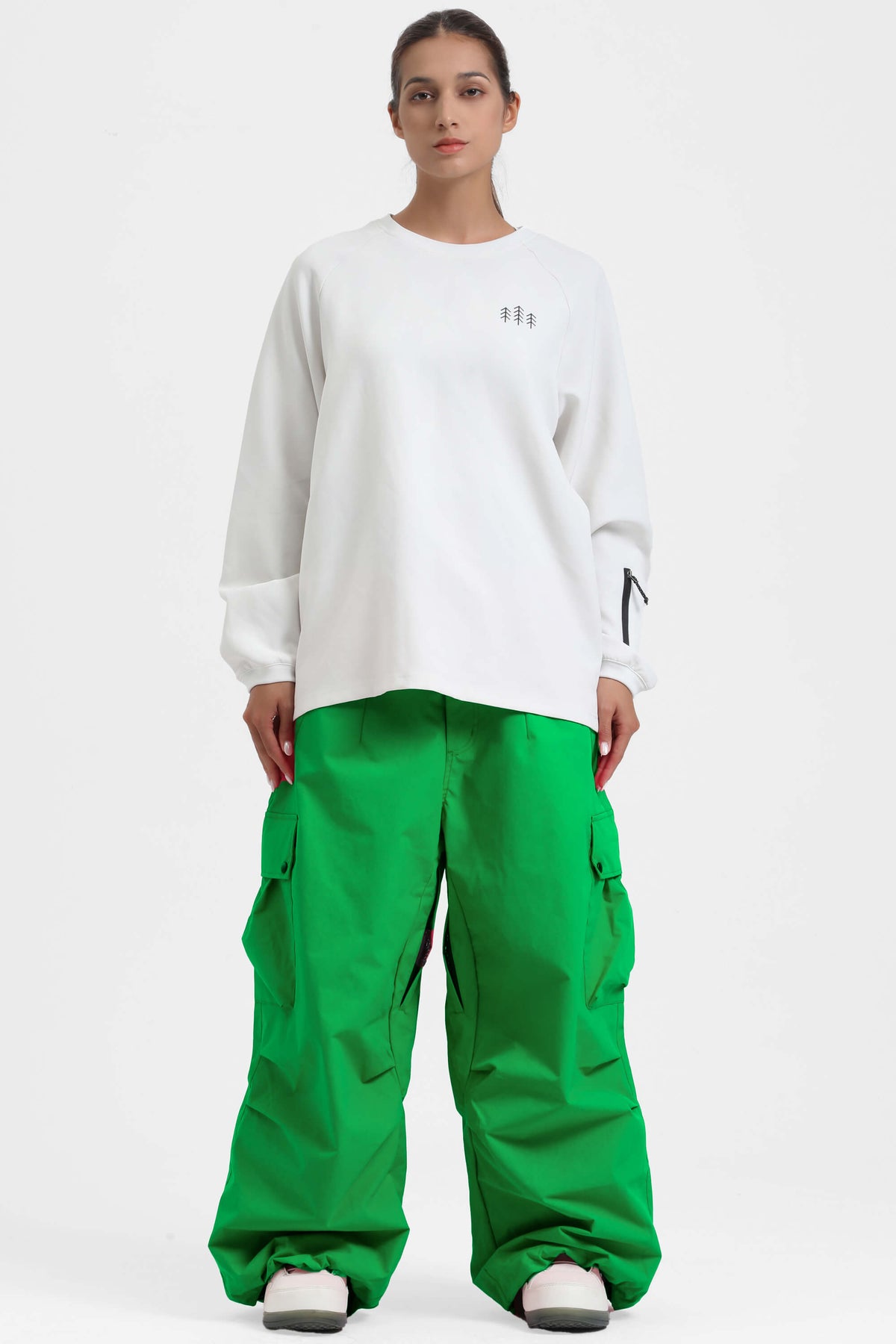 Waterproof and breathable, designed for skiing and snowboarding. The inside thigh features zippered vents to quickly expel excess heat during exercise. Equipped with multiple pockets, it has excellent loading capacity. The loose fit makes it a great choice for those seeking both style and flexibility.