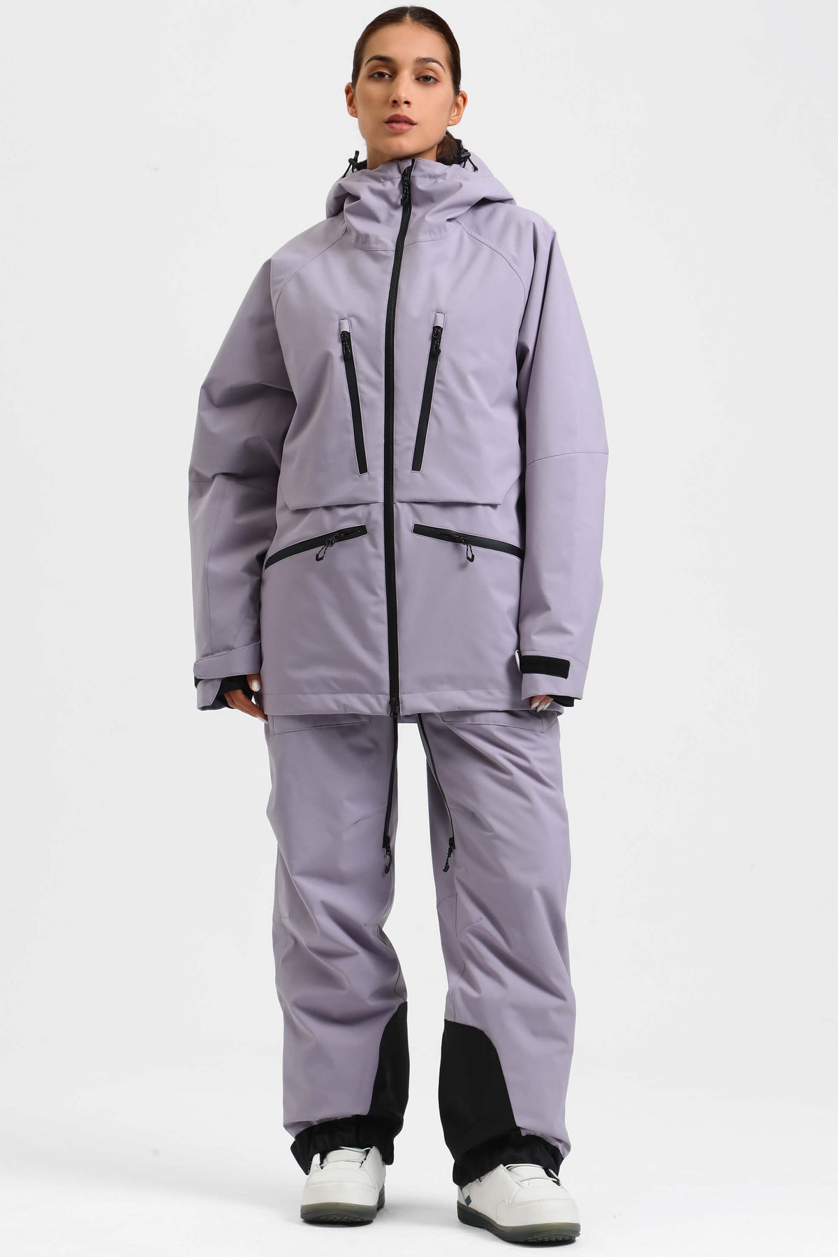 Jaqueta de neu aïllada impermeable multifuncional de color lavanda per a dona