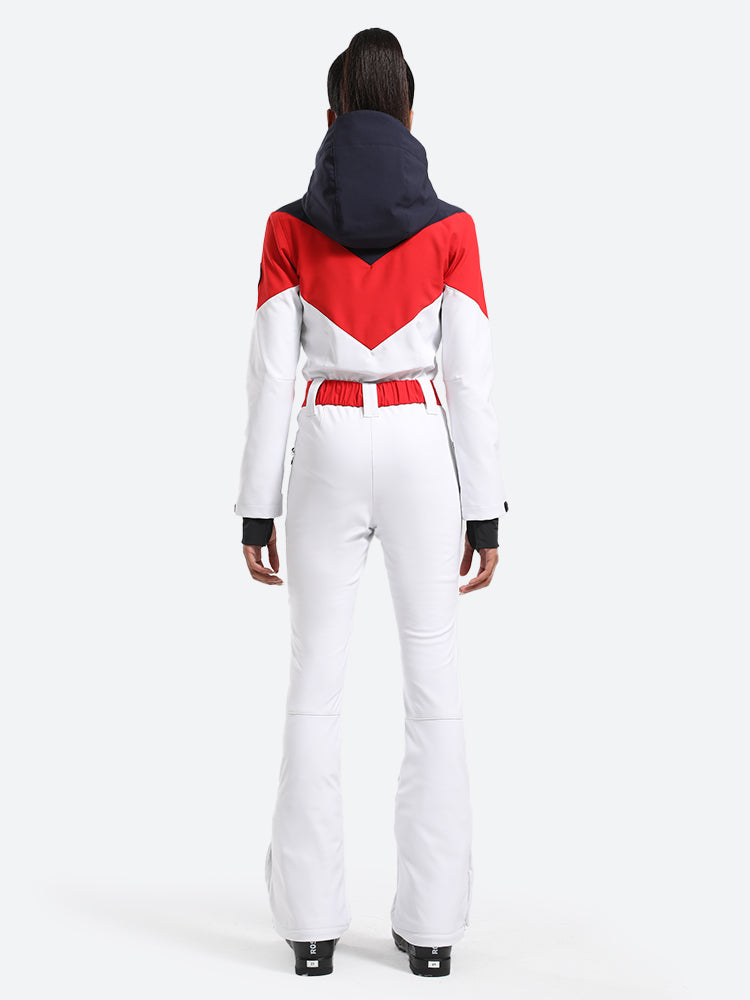 This one-piece ski suit is the perfect companion for your winter outdoor sports. Its all-over waterproof design effectively blocks cold wind and moisture. The removable hood lets you adjust it to the weather and your preferences. The color-blocking design makes you stand out in the snow.