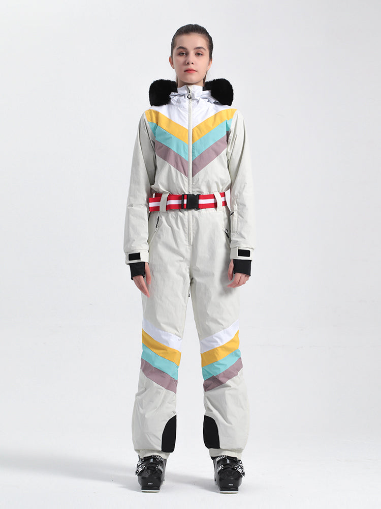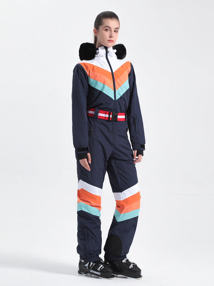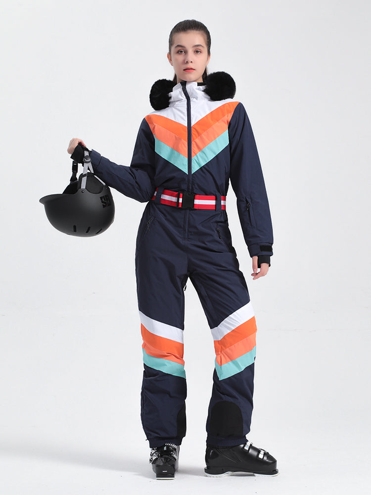 Designed with waterproof fabric and featuring elastic cuffs and hem for a secure fit, this ski suit shields you from the elements during winter sports. Its distinctive color-clashing pattern is a stylish and modern choice that adds an extra edge to your on-slope look.