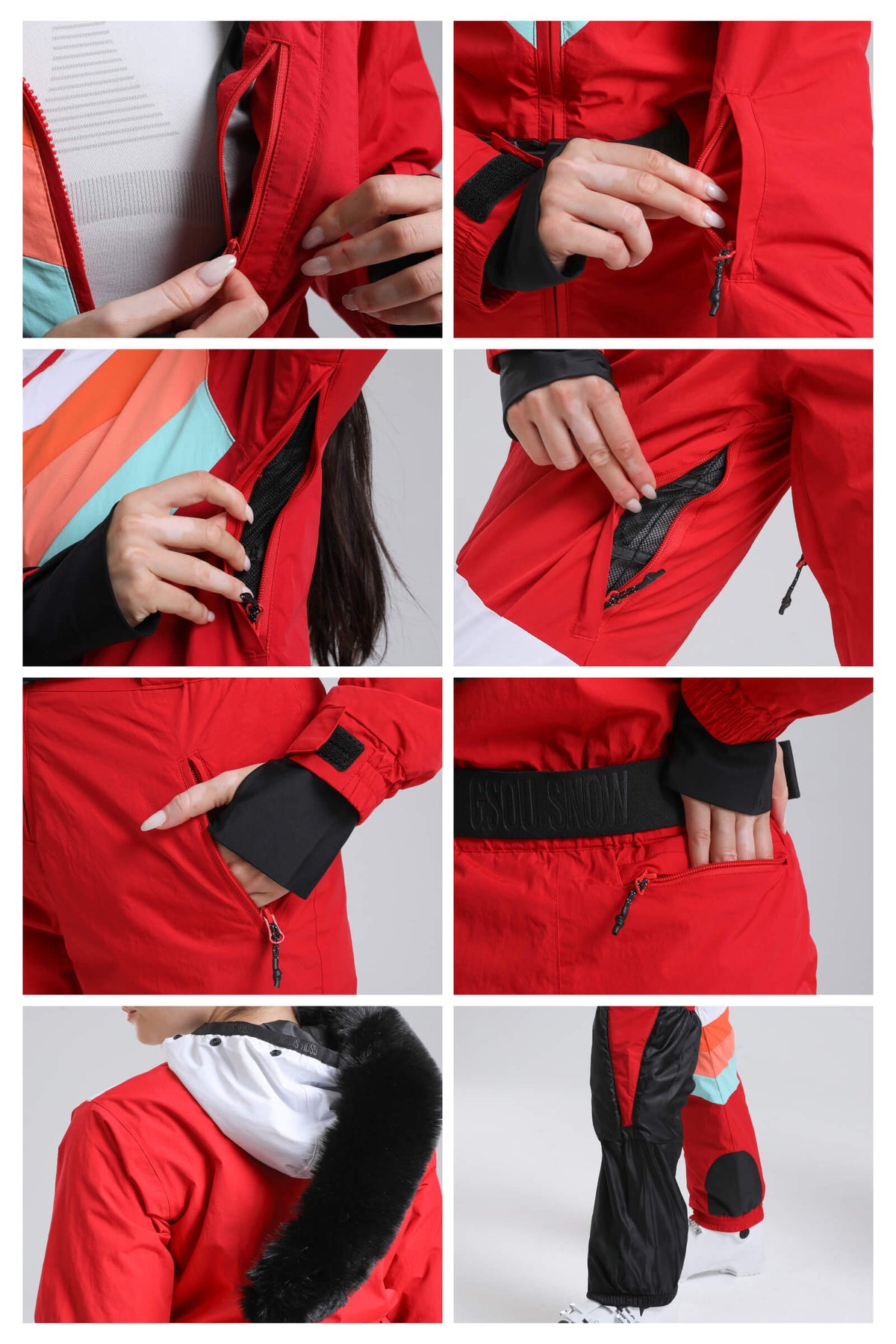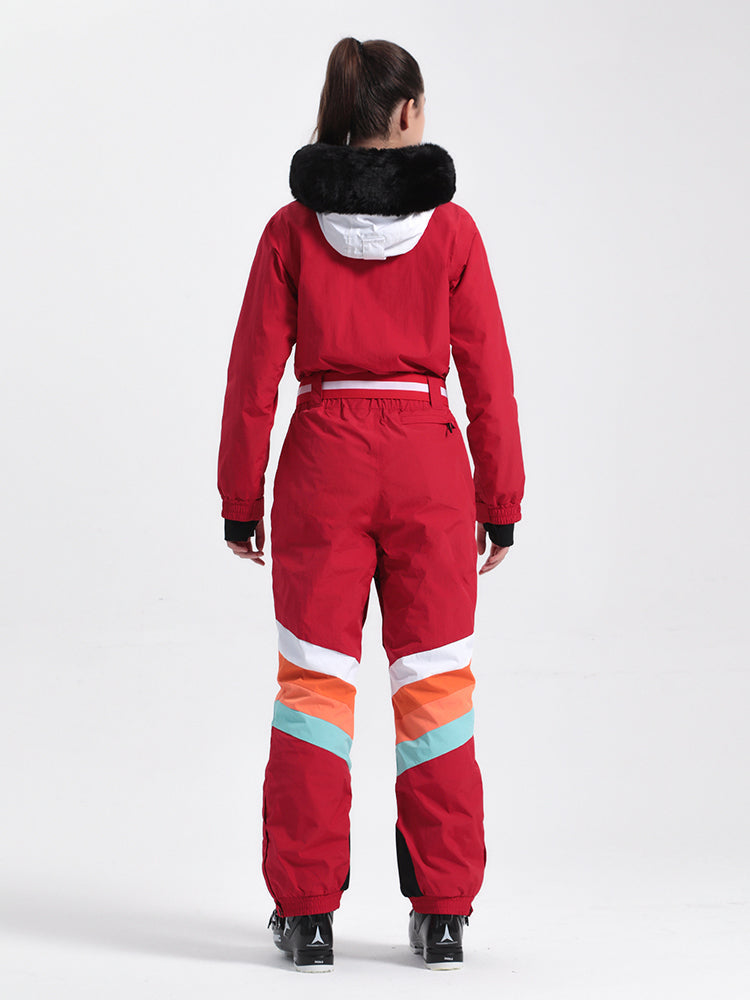 Women's Red Snow-Resistant Ventilated One-Piece Snow Suit