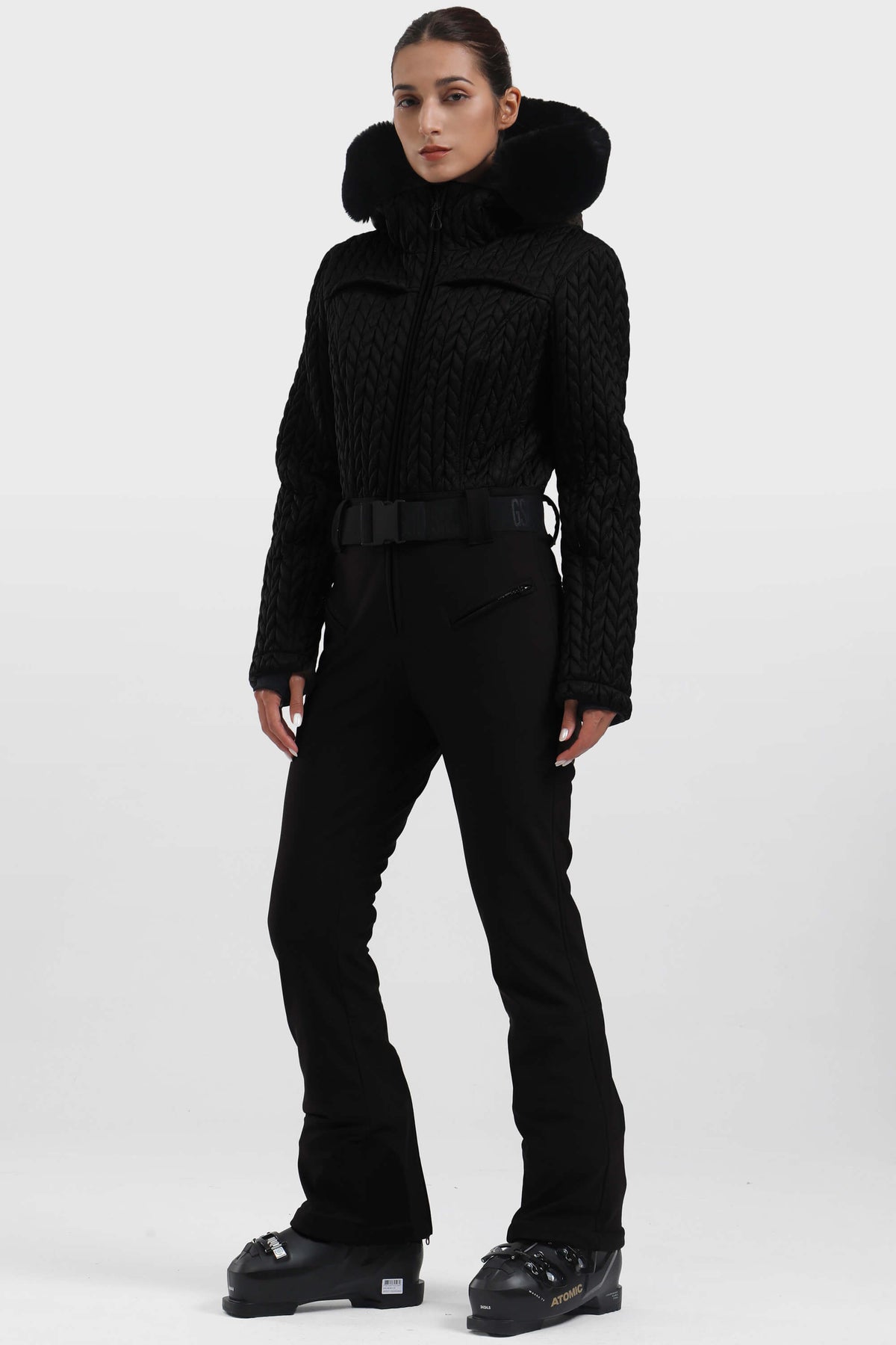 Women's Black Full Shirred Design One-Piece Ski Suit