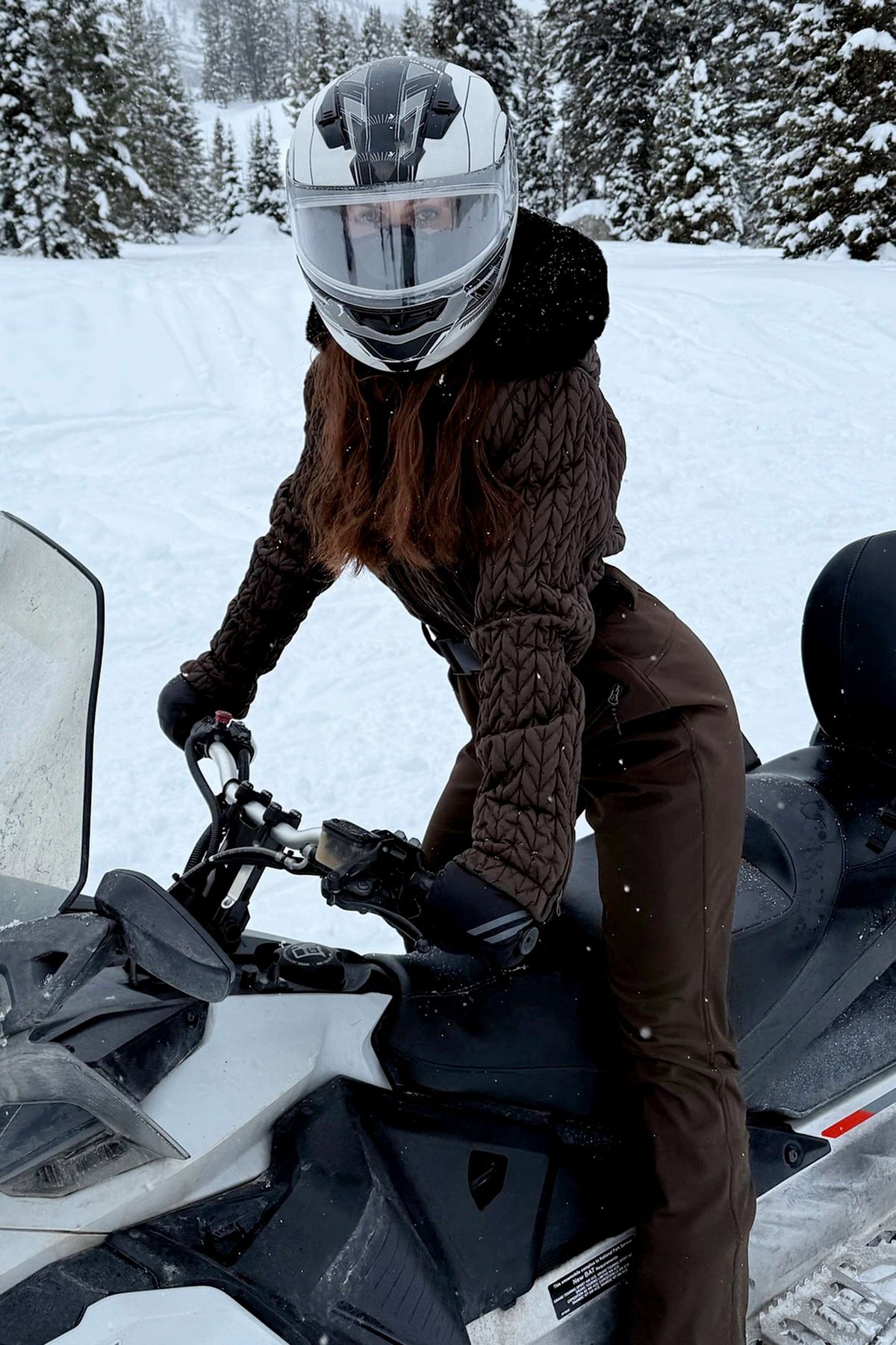 Stay style and warmth on the ski slopes with this high-performance ski suit. It boasts a slim-fit design and an outer layer that is waterproof and breathable. The shirred upper section offers enhanced stretch and flexibility.