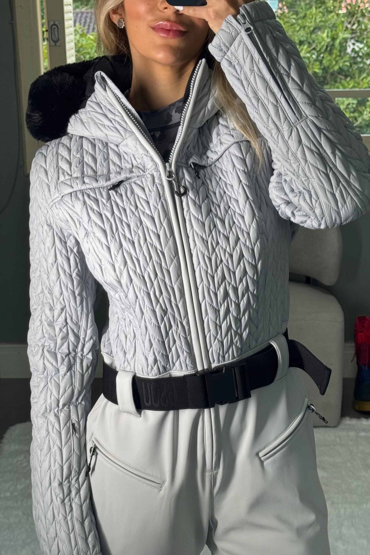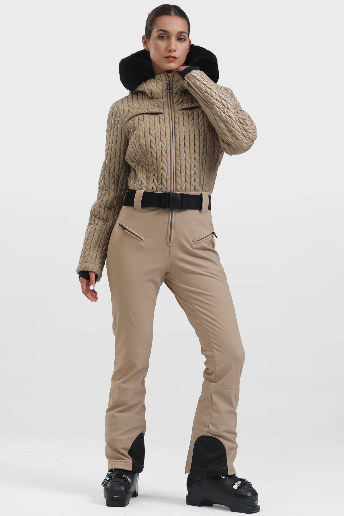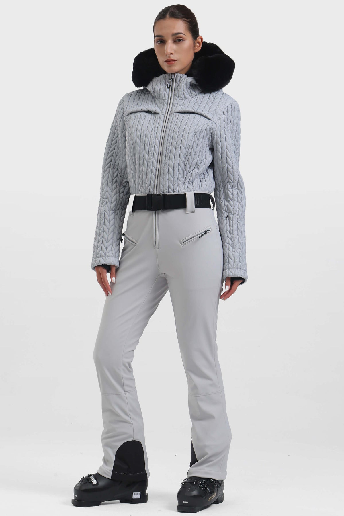 Stay style and warmth on the ski slopes with this high-performance ski suit. It boasts a slim-fit design and an outer layer that is waterproof and breathable. The shirred upper section offers enhanced stretch and flexibility.