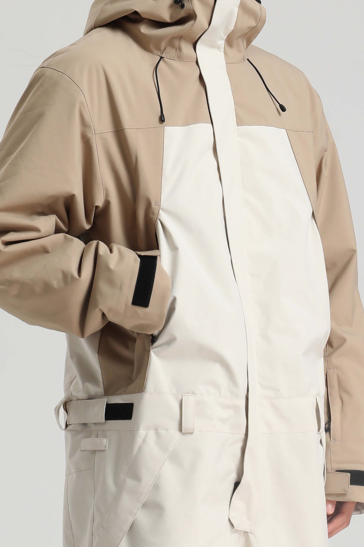 Men's Khaki & White Insulated Color-block Utility Baggy One-Piece Ski Suit