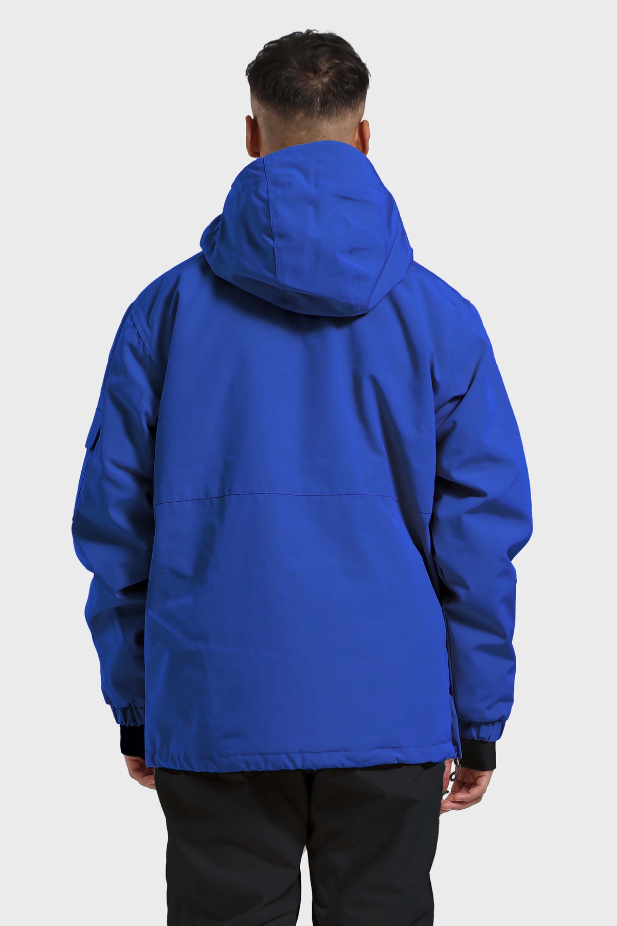 Men's Klein Blue Asymmetrical Kangaroo Pocket Waterproof Insulated Snow Anoraks