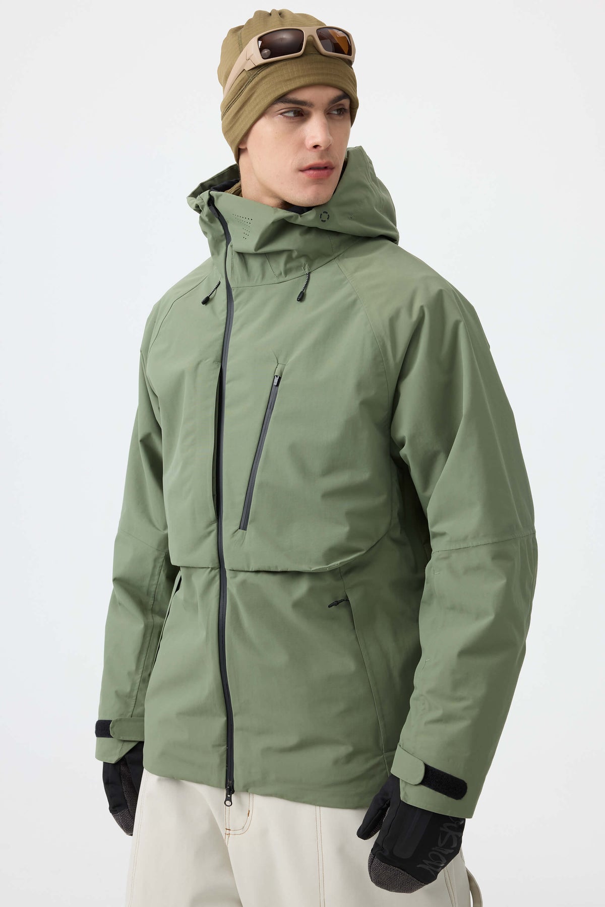 Men's Army Green Face Vented Multi-pocket Fully Waterproof Snow Jacket