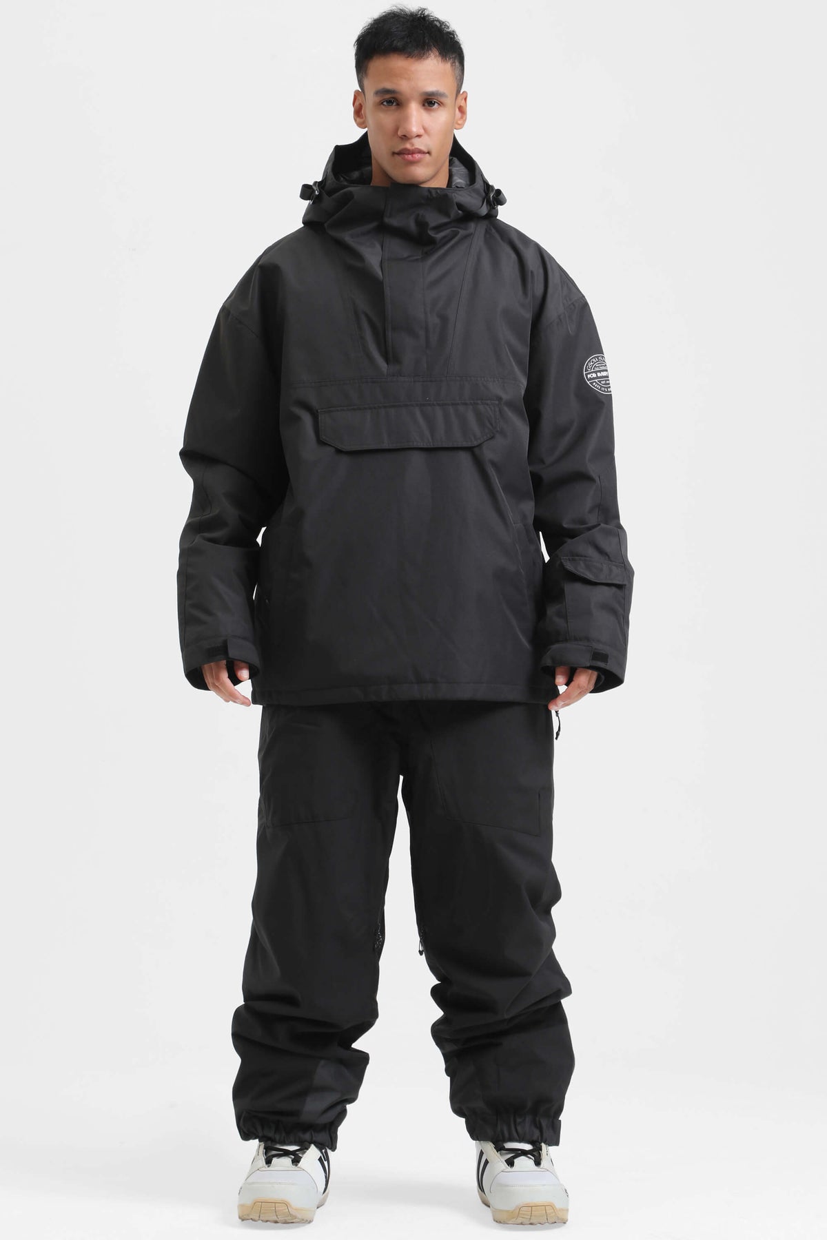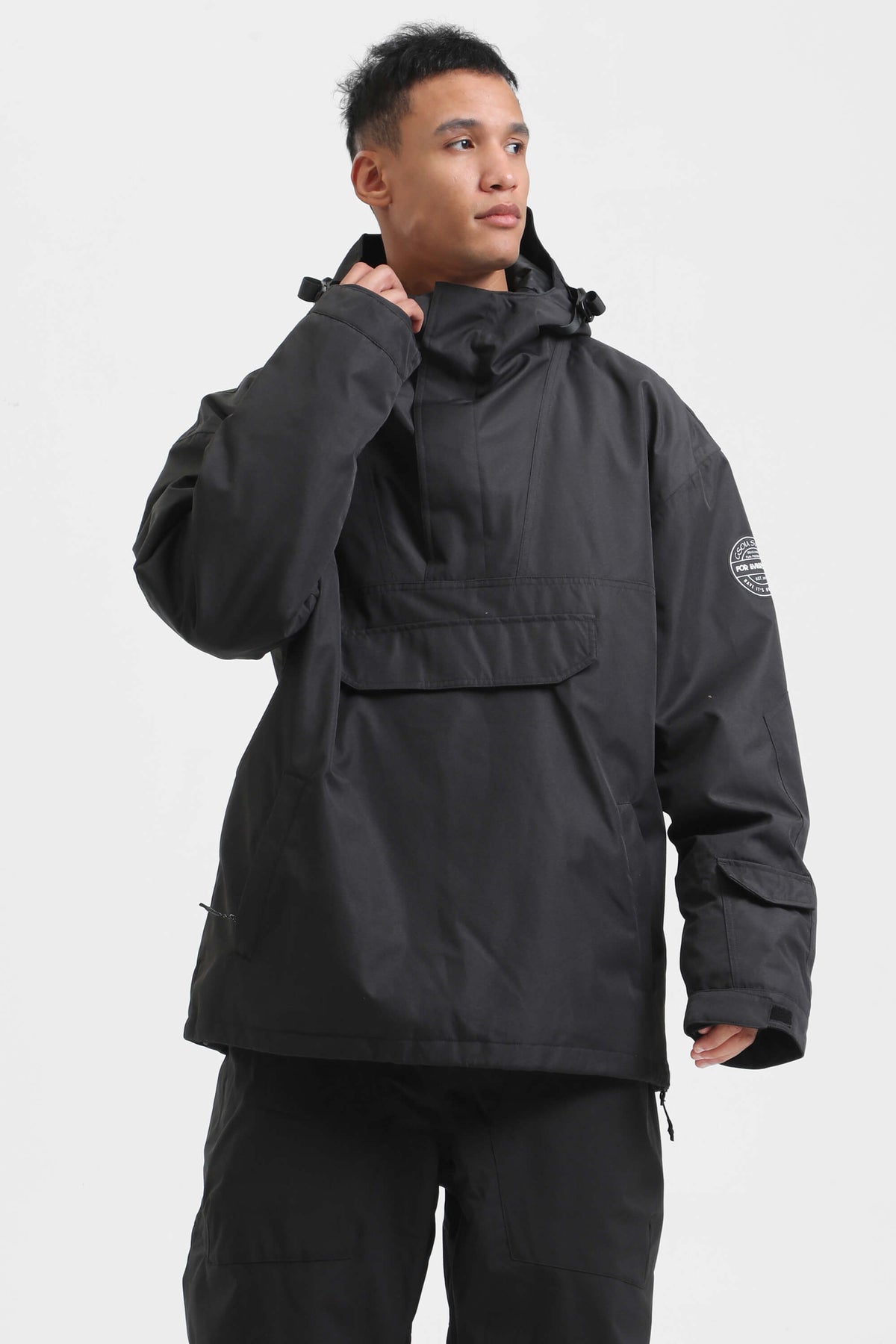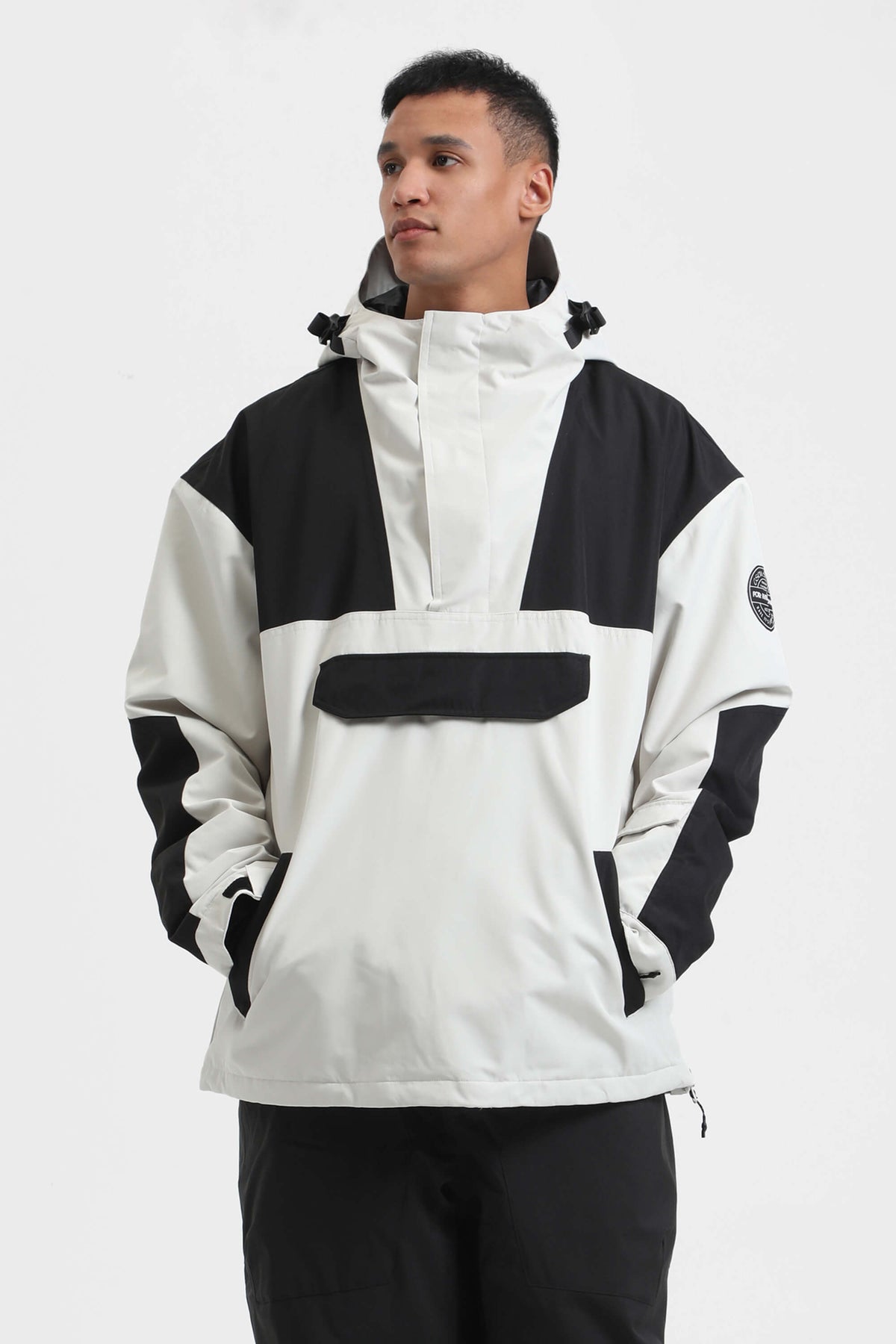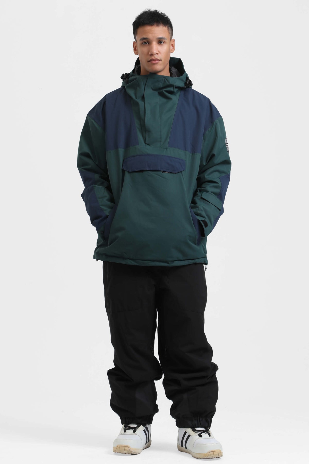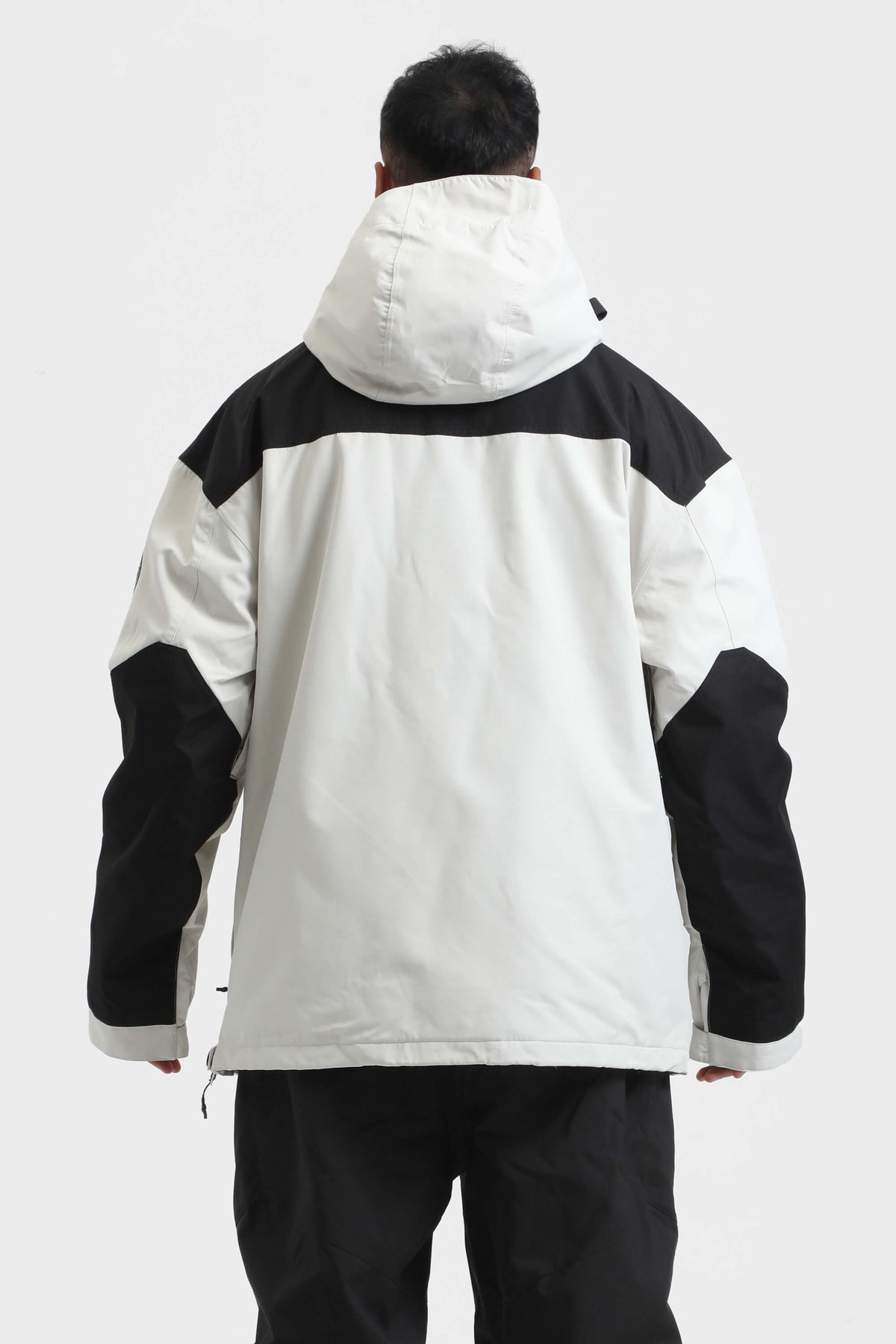 The GSou Snow ski Anoraks feature a color-block design and are both waterproof and warm. They also come with an adjustable hood, adjustable cuffs, and a powder skirt. Right-side underarm zipper vent allows for easy access to the bib, while the hem includes a drawstring and snap buttons.