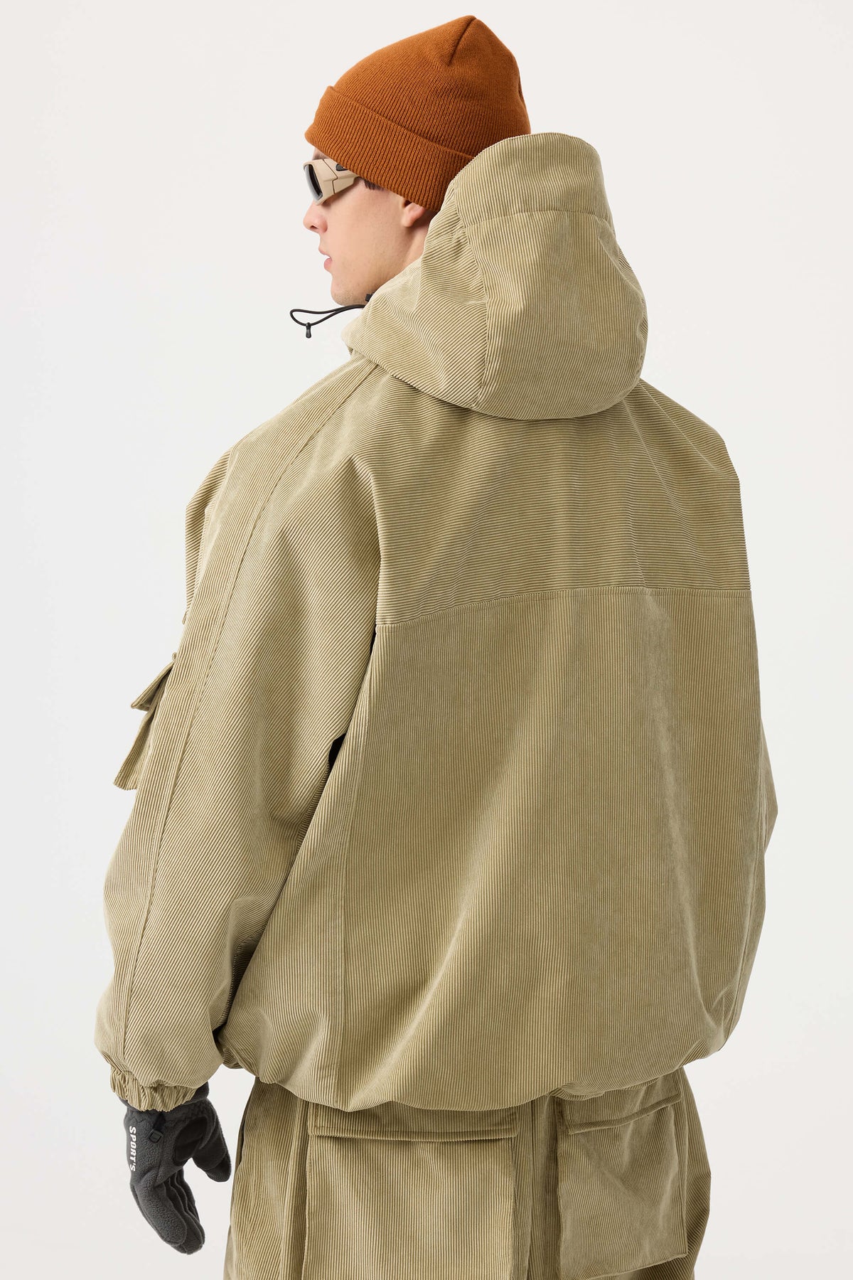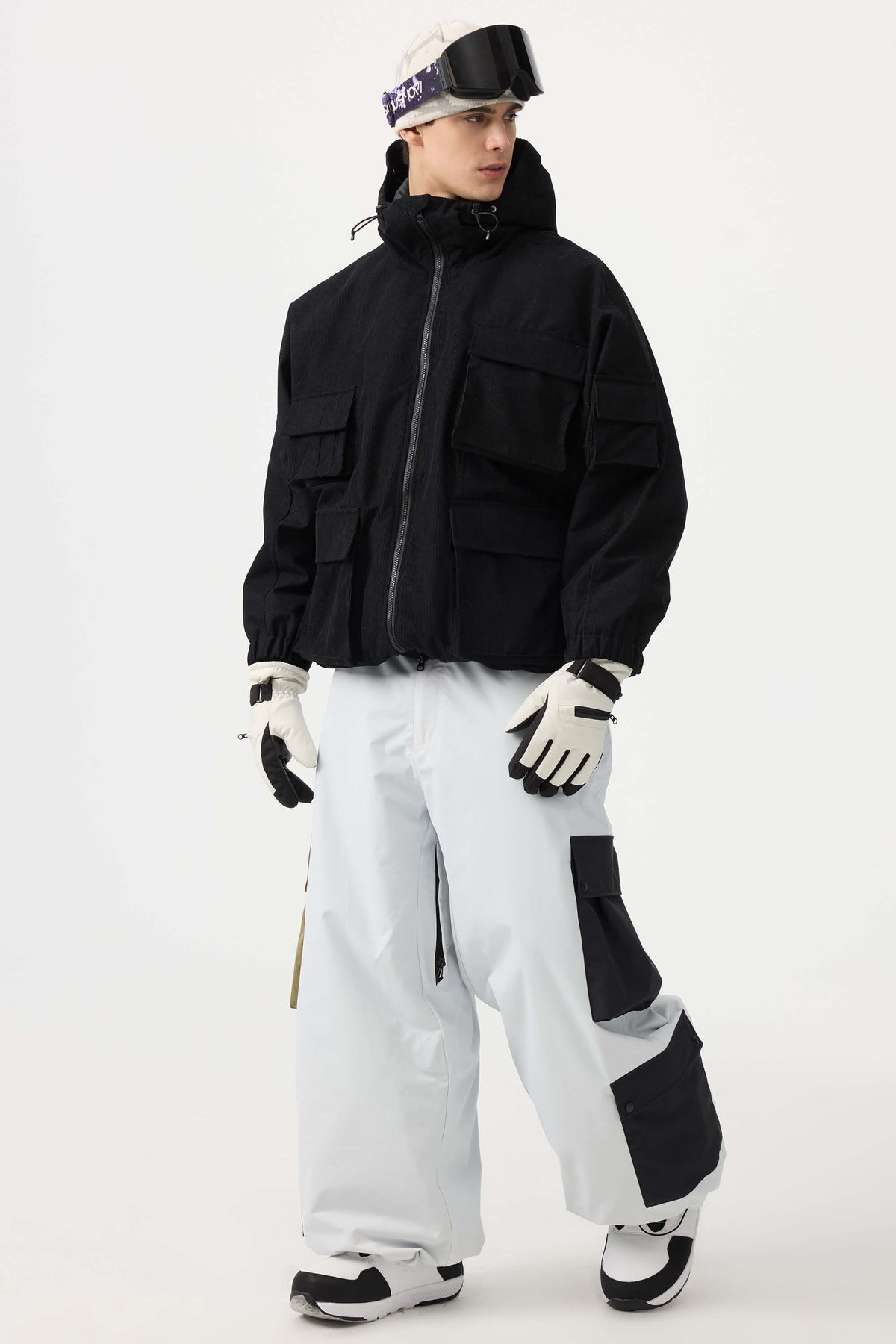Men's Black Waterproof Corduroy Batwing Sleeve Large Pocket Snow Jacket