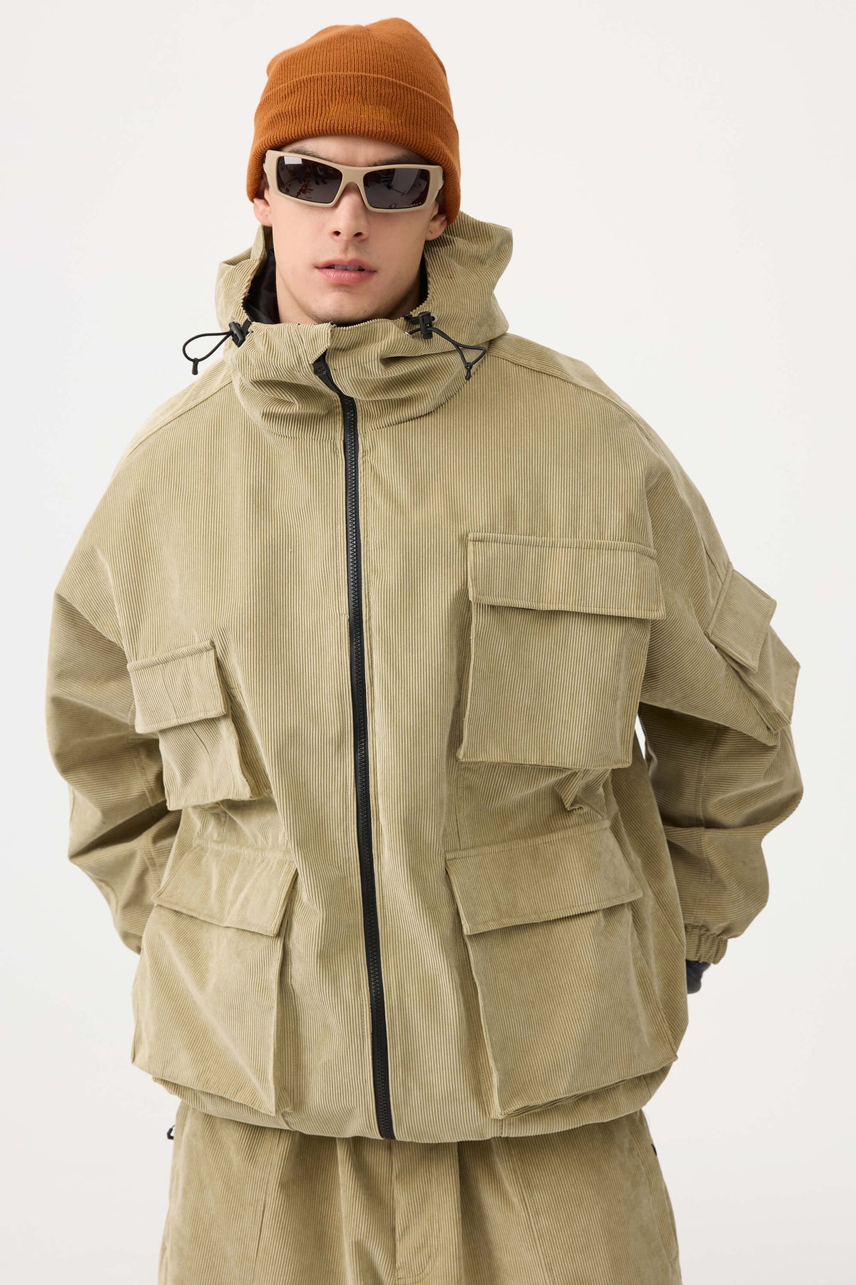 This snow jacket is made of high quality 100% polyester corduroy fabric, treated with 2L fabric pressing process and water repellent coating, making it waterproof up to 20k and moisture permeable up to 15k, together with skin-friendly fleece on the neckline, the overall is both dry and skin-friendly. Elastic cuffs and drawstring hem, effectively organizing powder snow intrusion. Multiple pockets are designed to provide extra storage space for a variety of needs while skiing.