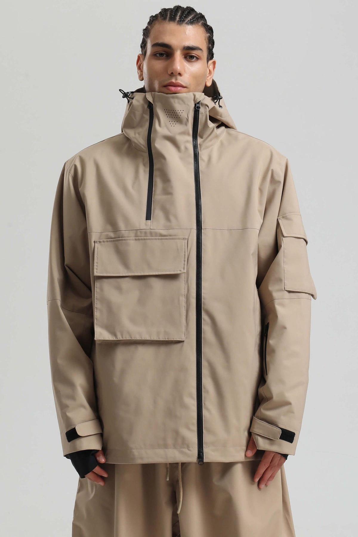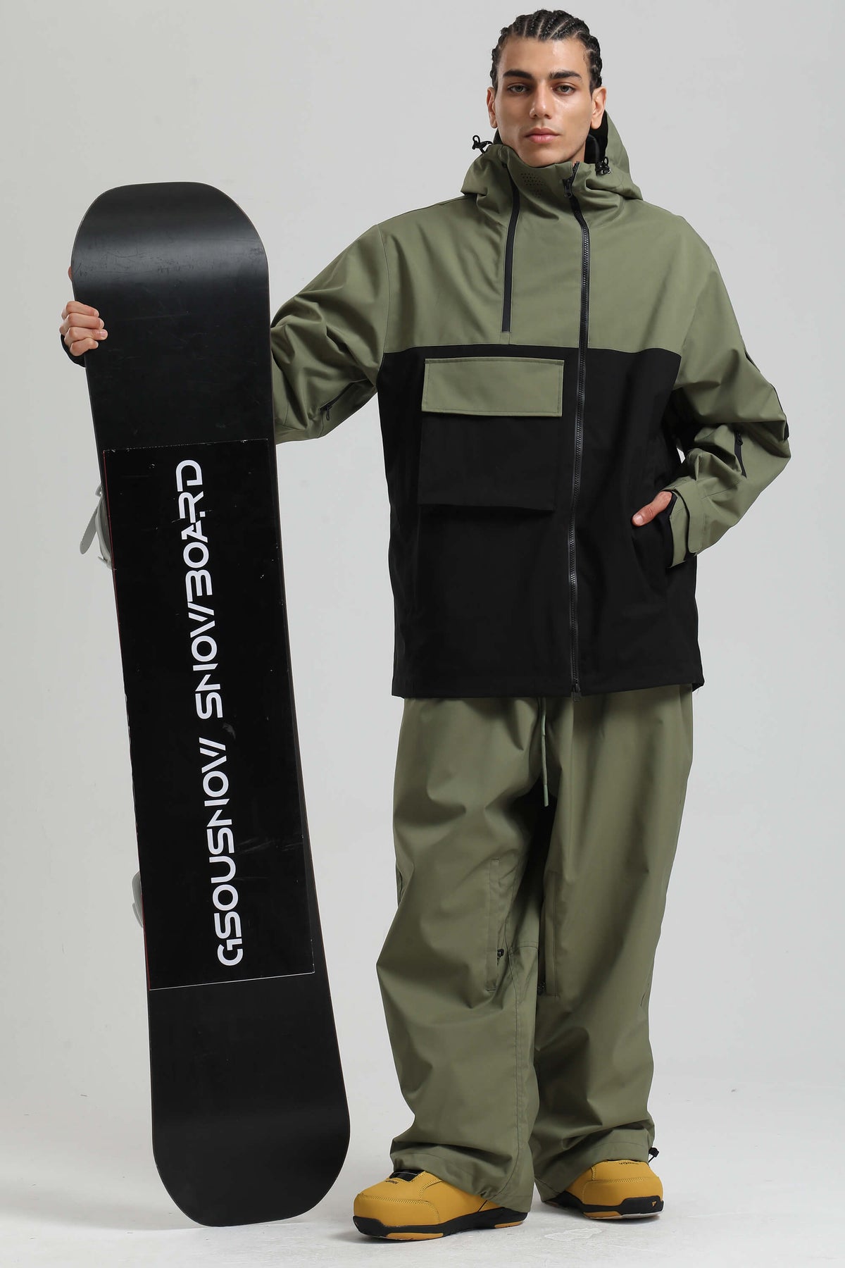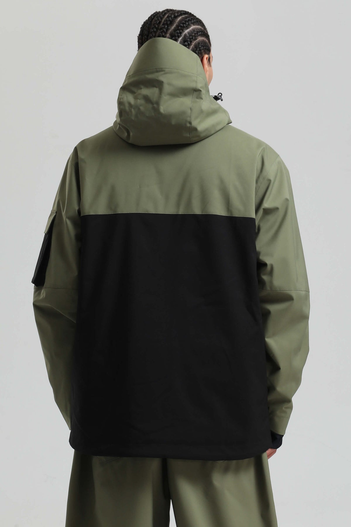 Men's Green & Black Asym-Zip Utility Pocket Waterproof Snow Jacket