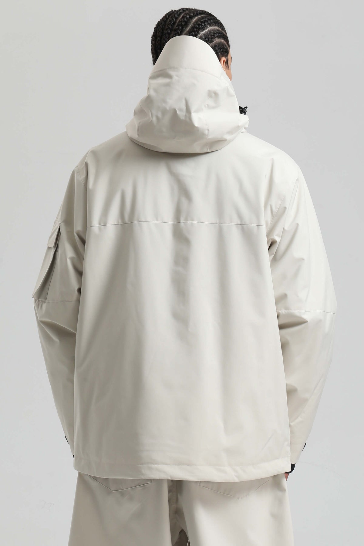 Men's Off White Asym-Zip Utility Pocket Waterproof Snow Jacket