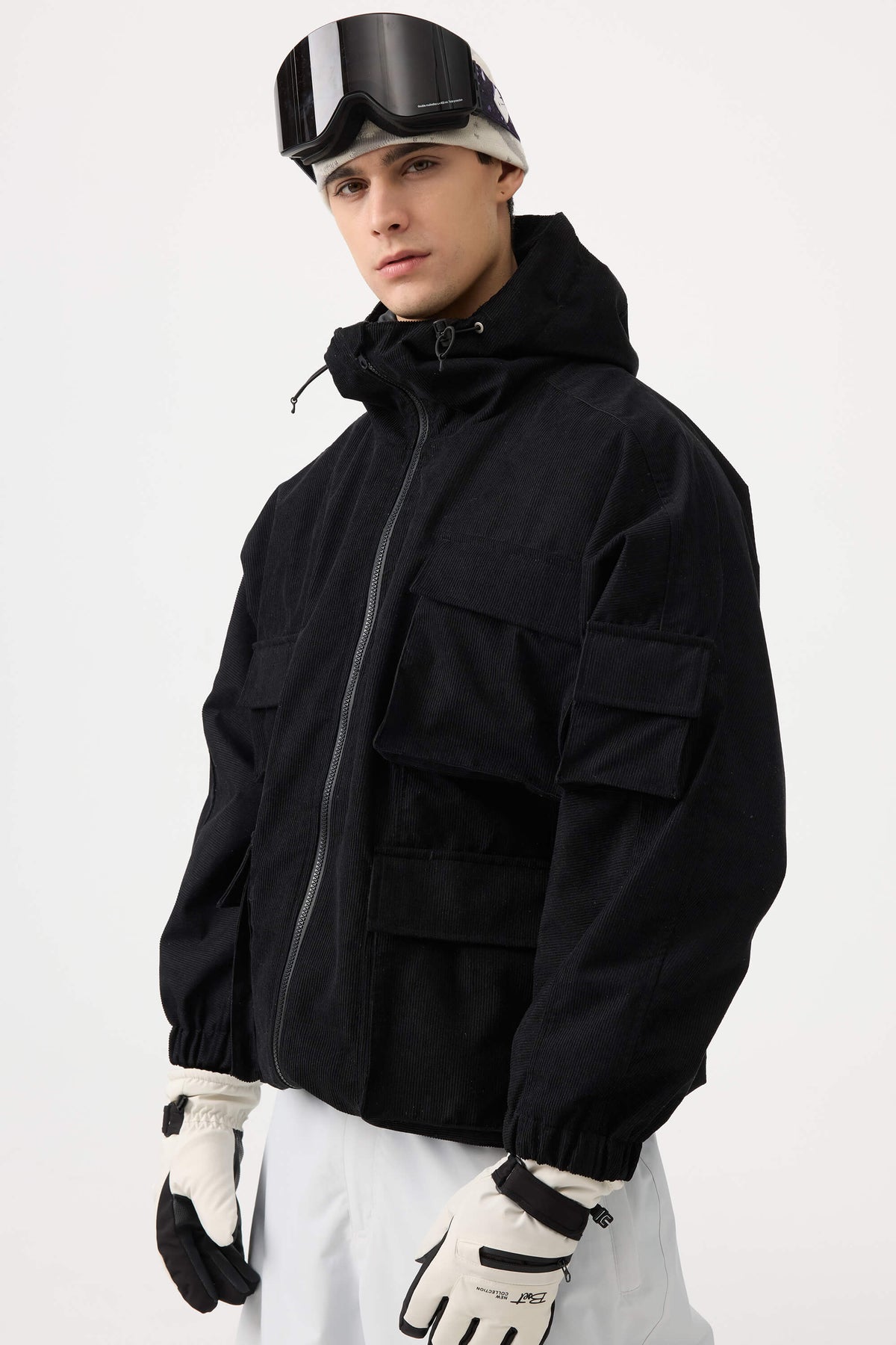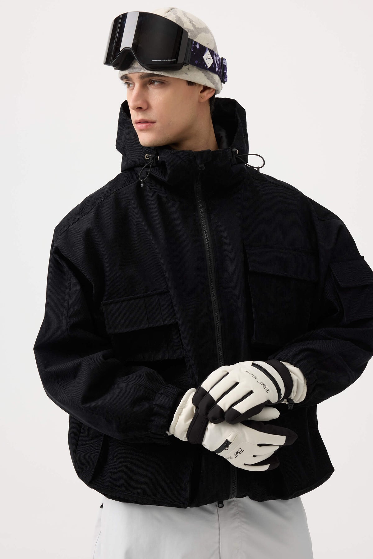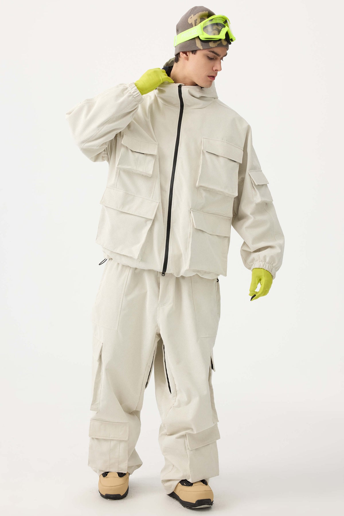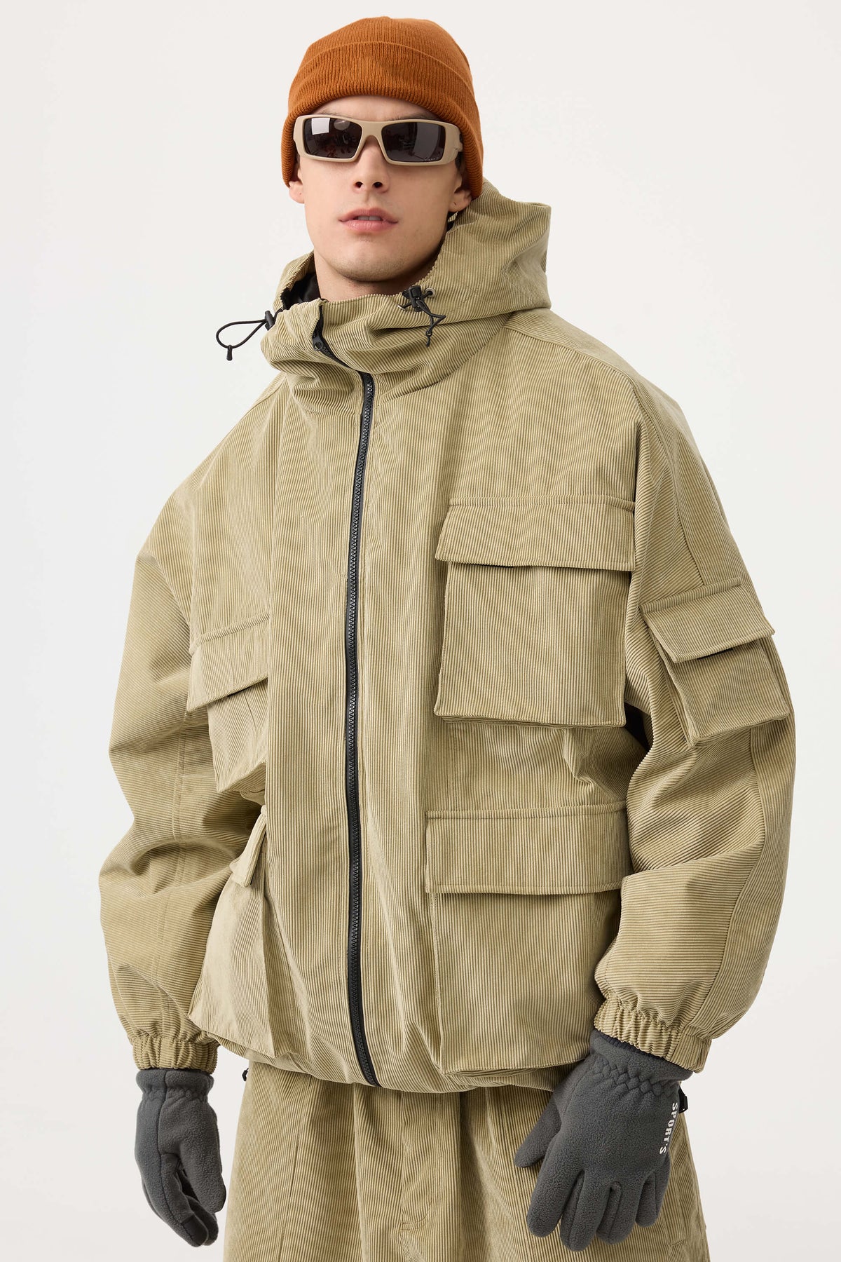 Men's Off White Waterproof Corduroy Batwing Sleeve Large Pocket Snow Jacket
