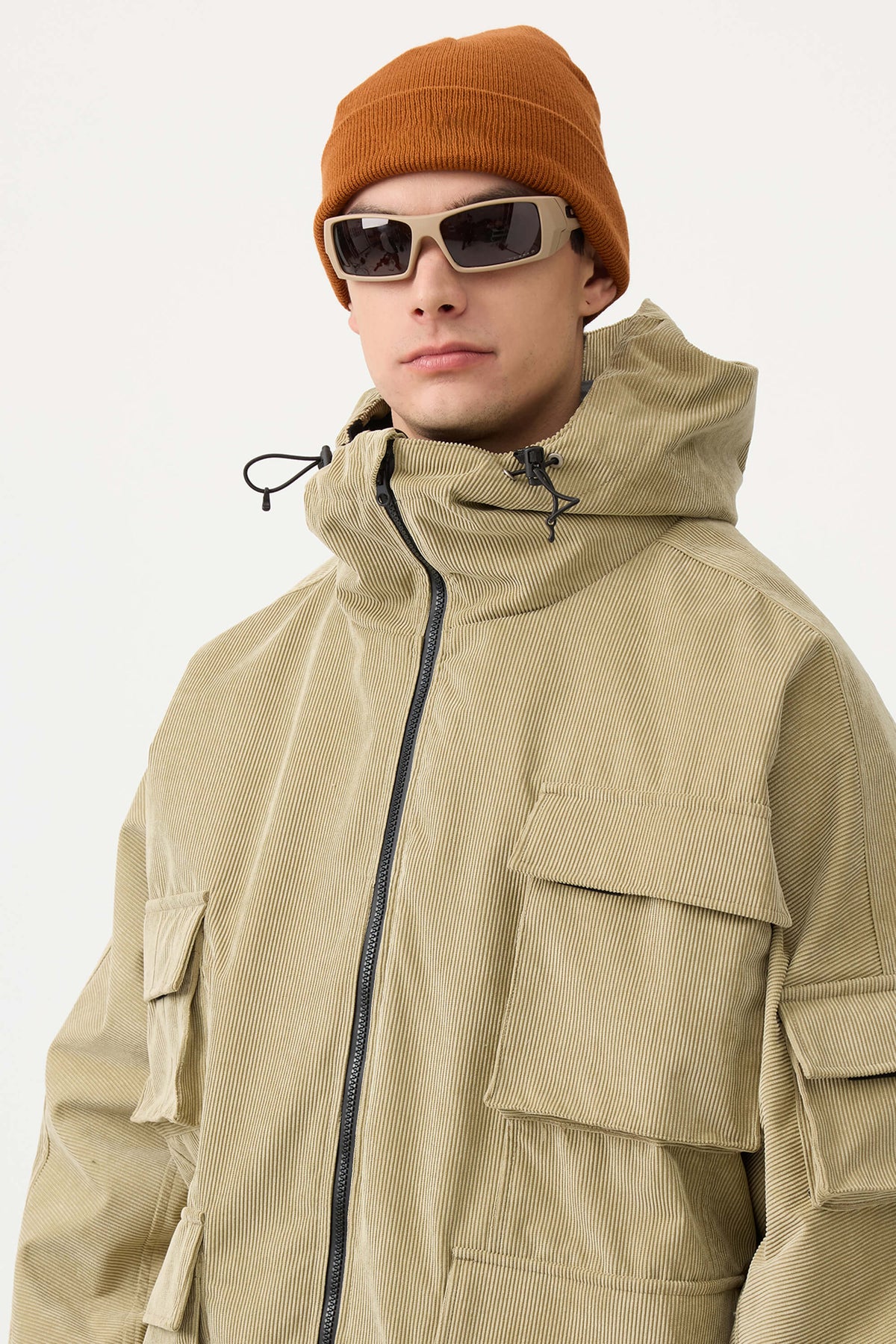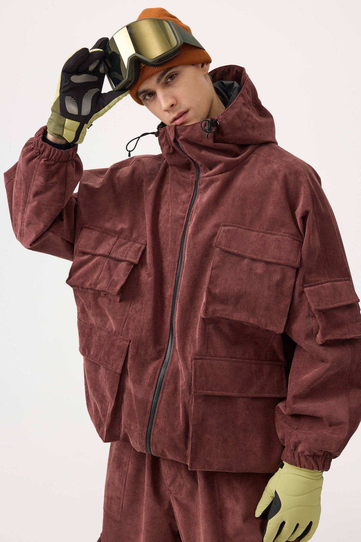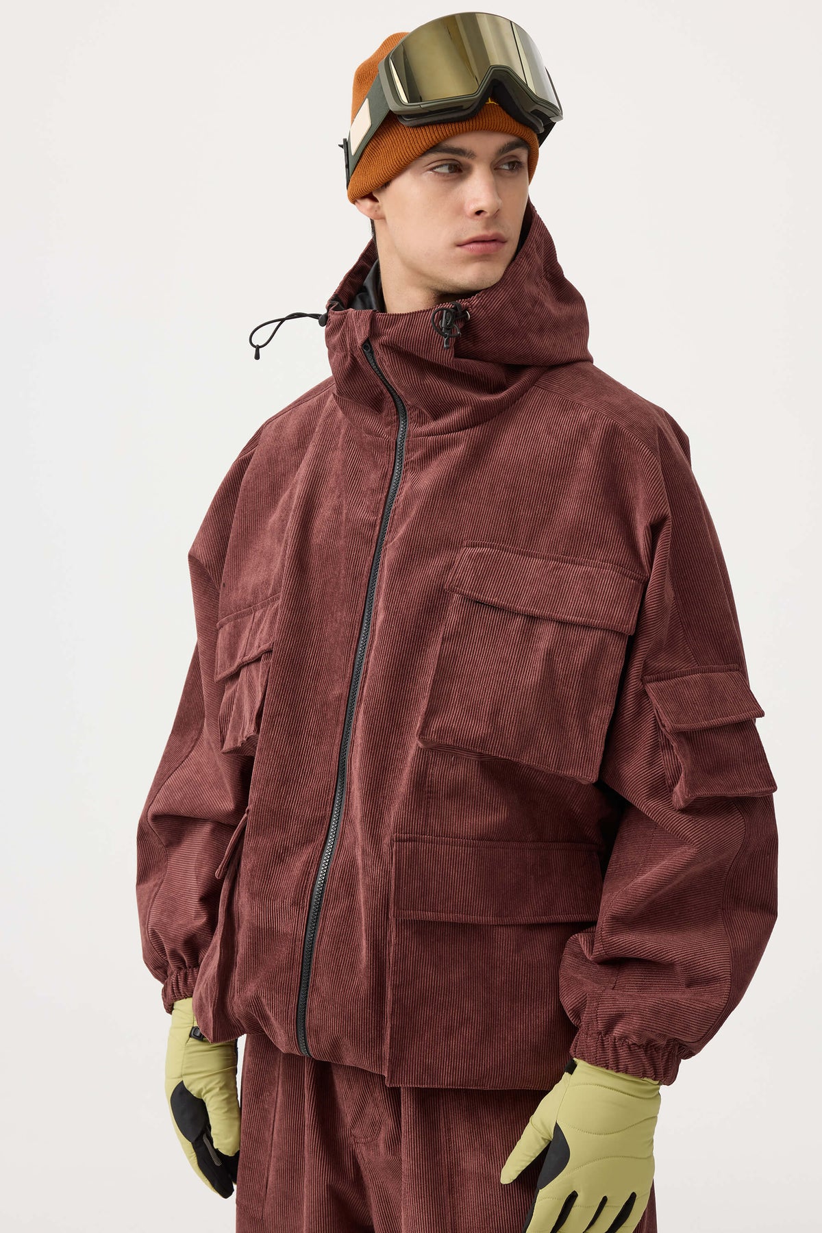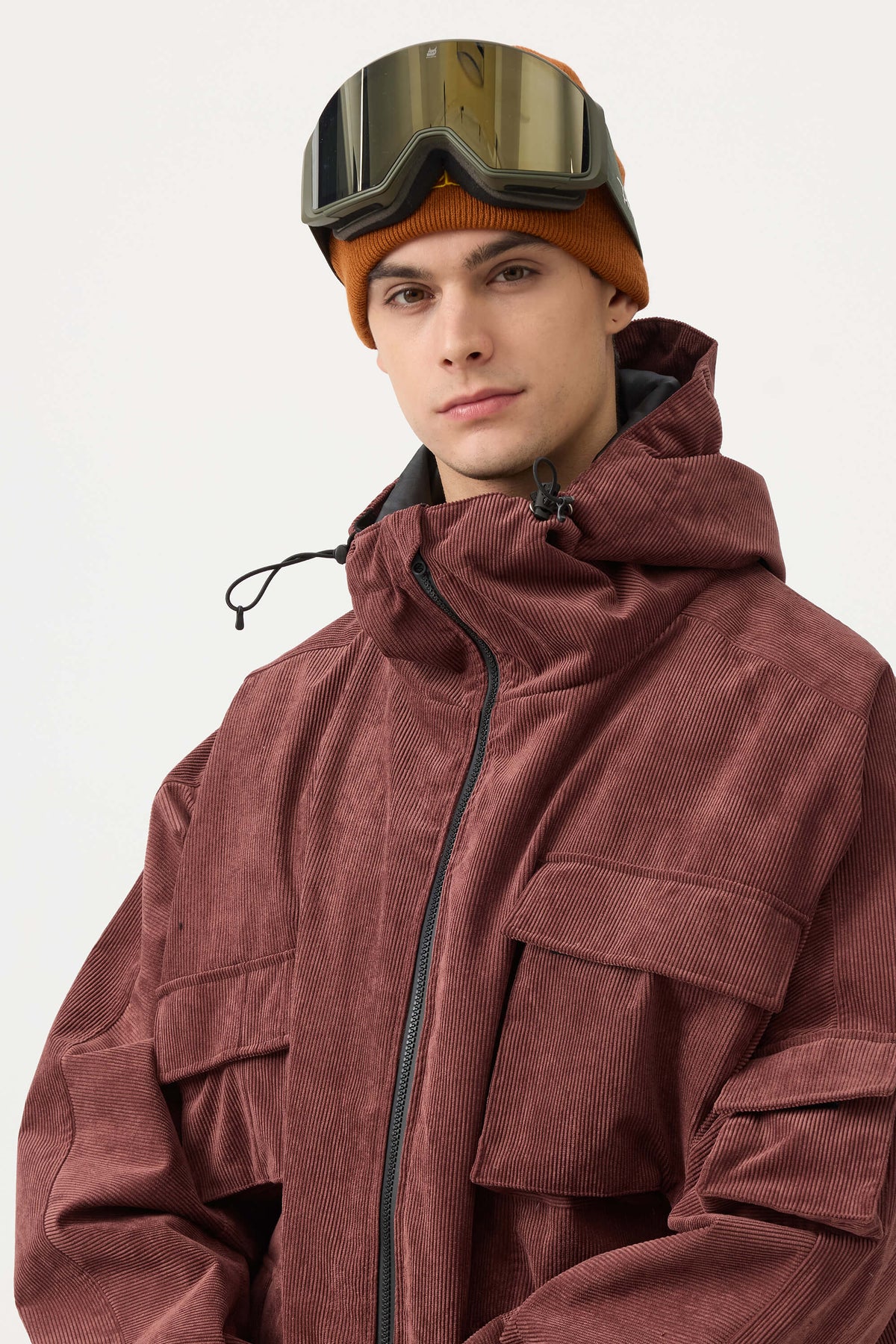 Men's Off White Waterproof Corduroy Batwing Sleeve Large Pocket Snow Jacket