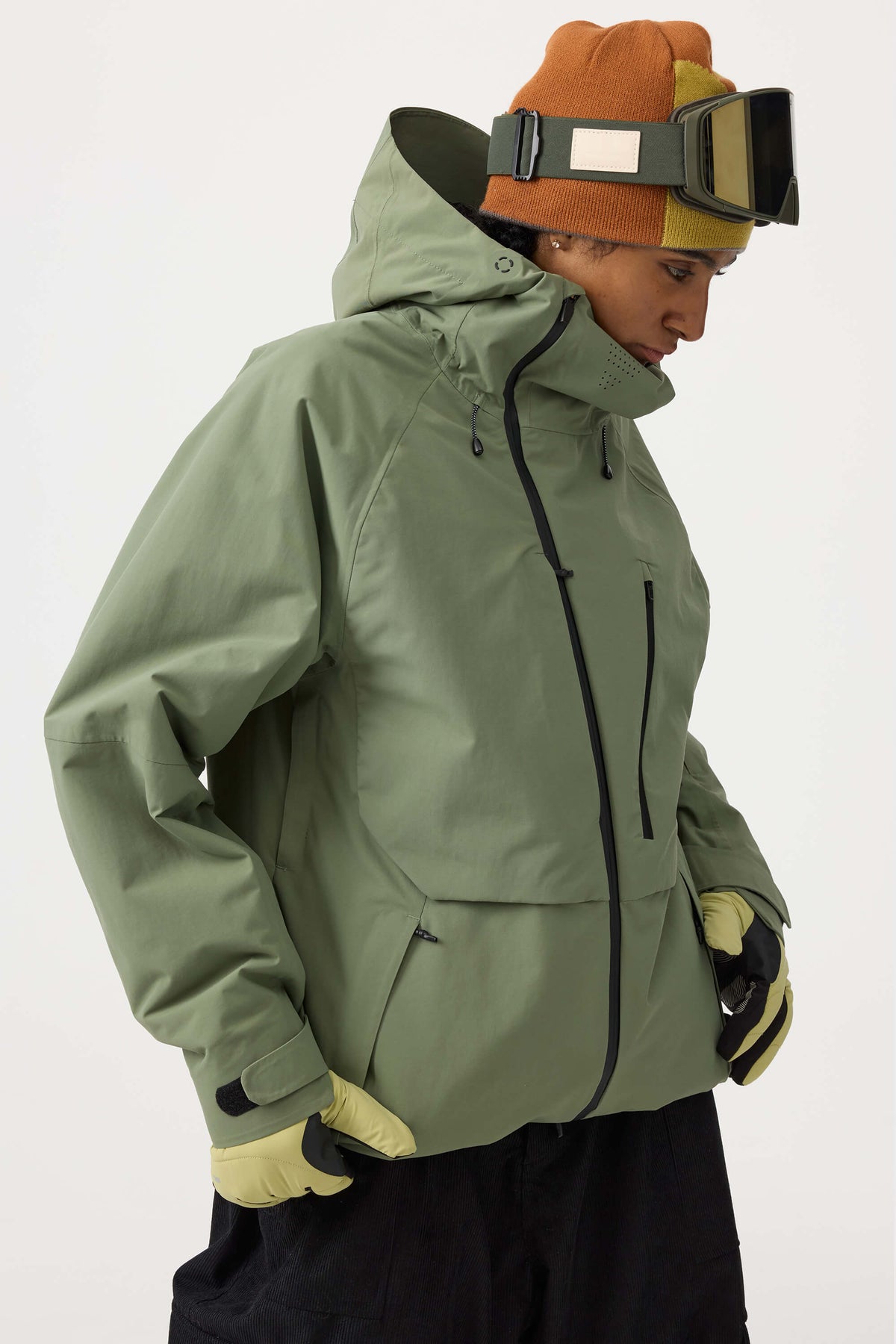 Women's Army Green Face Vented Multi-pocket Fully Waterproof Snow Jacket