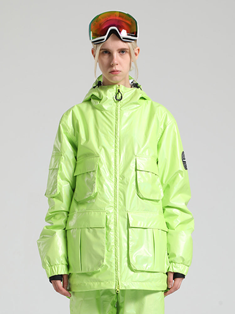Women's Black Multi-Pocket Glossy Insulated Waterproof Snow Jackets