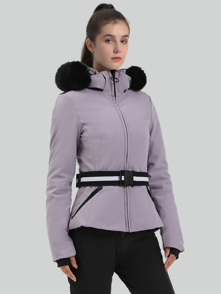 Warm duck down fills the hood and collar while warm polyester fills the entire body and is water-resistant and breathable, making it an indispensable piece of gear for skiing. The fluorescent shell adds both visibility and style. It also has a removable hood with faux fur trim.
