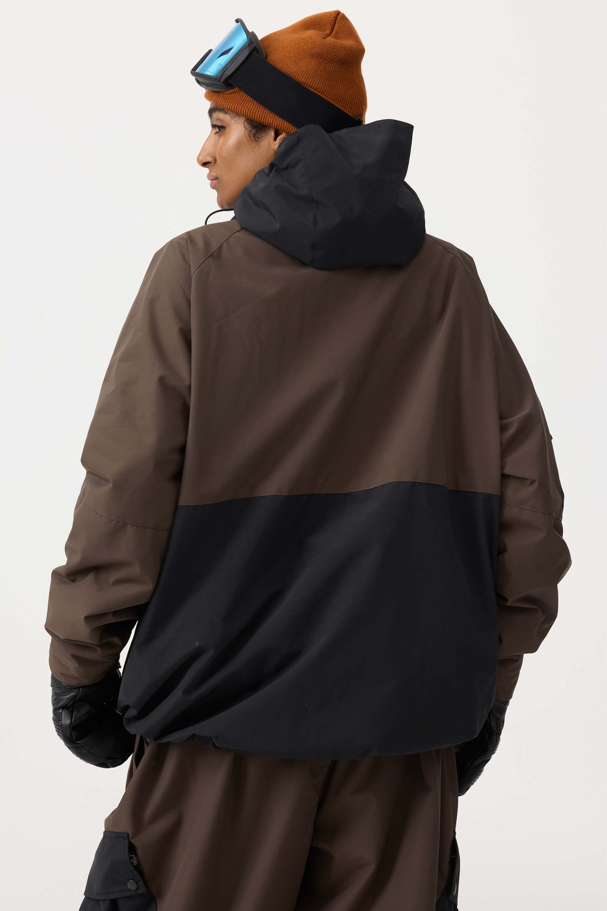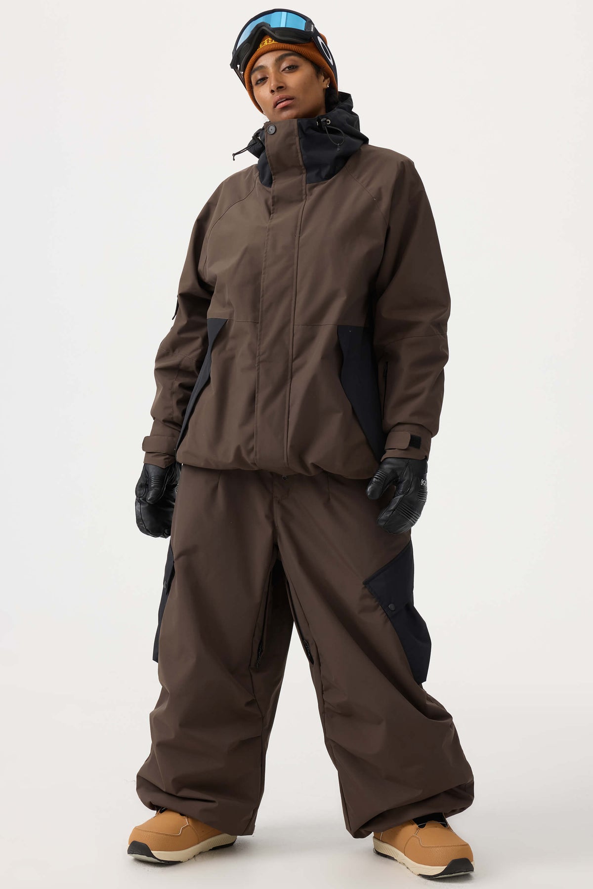 Women's Coffee Raglan Sleeve Color Block Waterproof Breathable Snow Jacket
