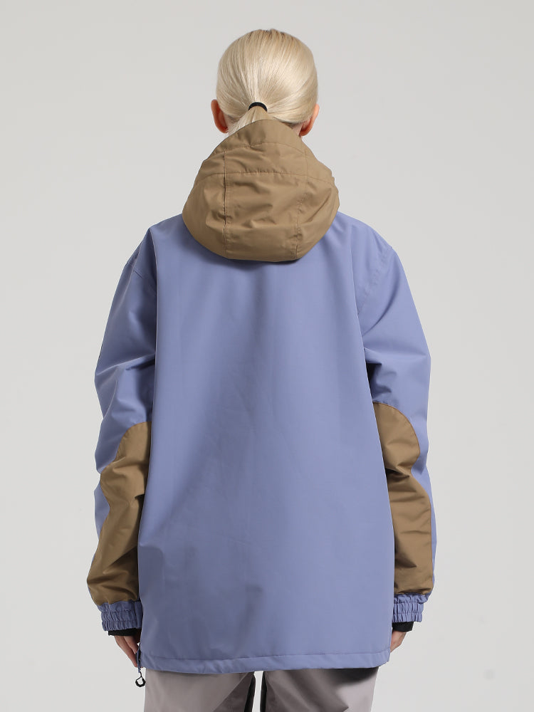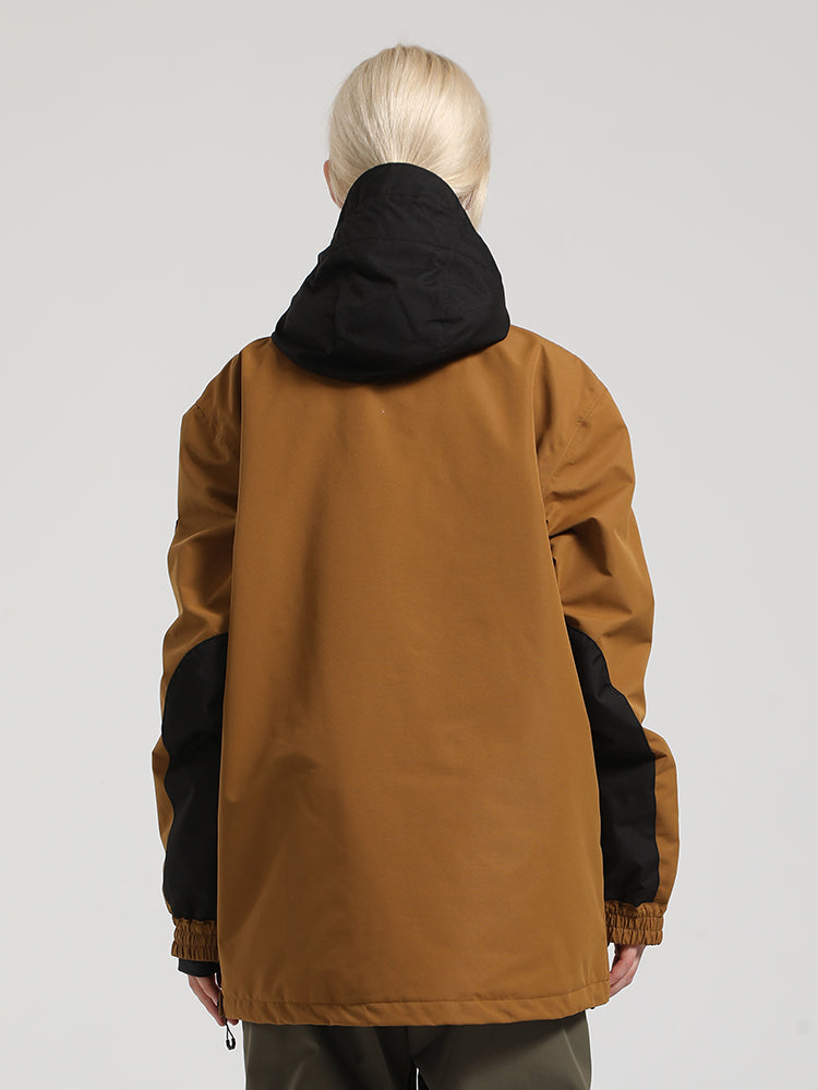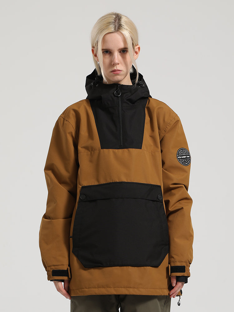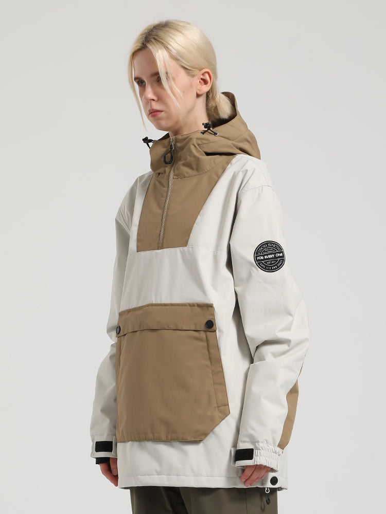 Women's Khaki & Beige Patchwork Kangaroo Pocket Snow Anoraks