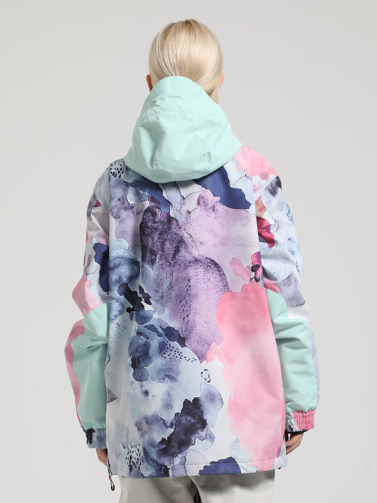 The GSou Snow ski hoodies are made of 100% polyester fabric and feature a vibrant color scheme. A unique aspect is the super-large pocket in the middle of the hoodie, which has waterproof zippers on three sides. The hem includes a windproof skirt with snap buttons.