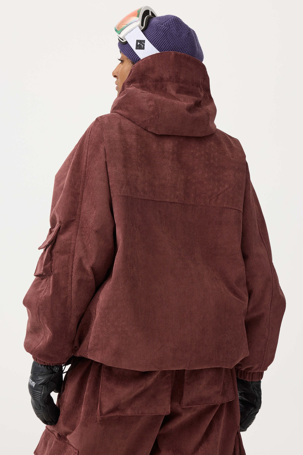 This snow jacket is made of high quality 100% polyester corduroy fabric, treated with 2L fabric pressing process and water repellent coating, making it waterproof up to 20k and moisture permeable up to 15k, together with skin-friendly fleece on the neckline, the overall is both dry and skin-friendly. Elastic cuffs and drawstring hem, effectively organizing powder snow intrusion. Multiple pockets are designed to provide extra storage space for a variety of needs while skiing.