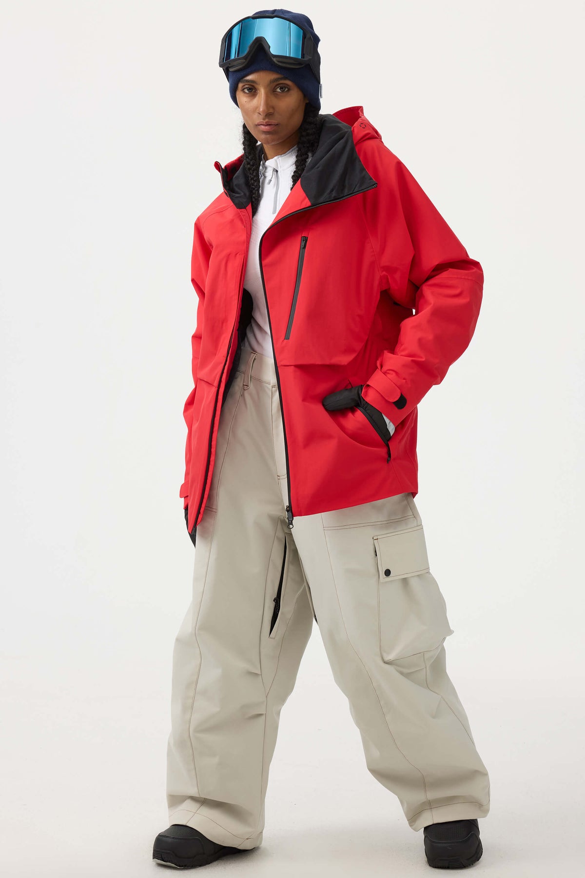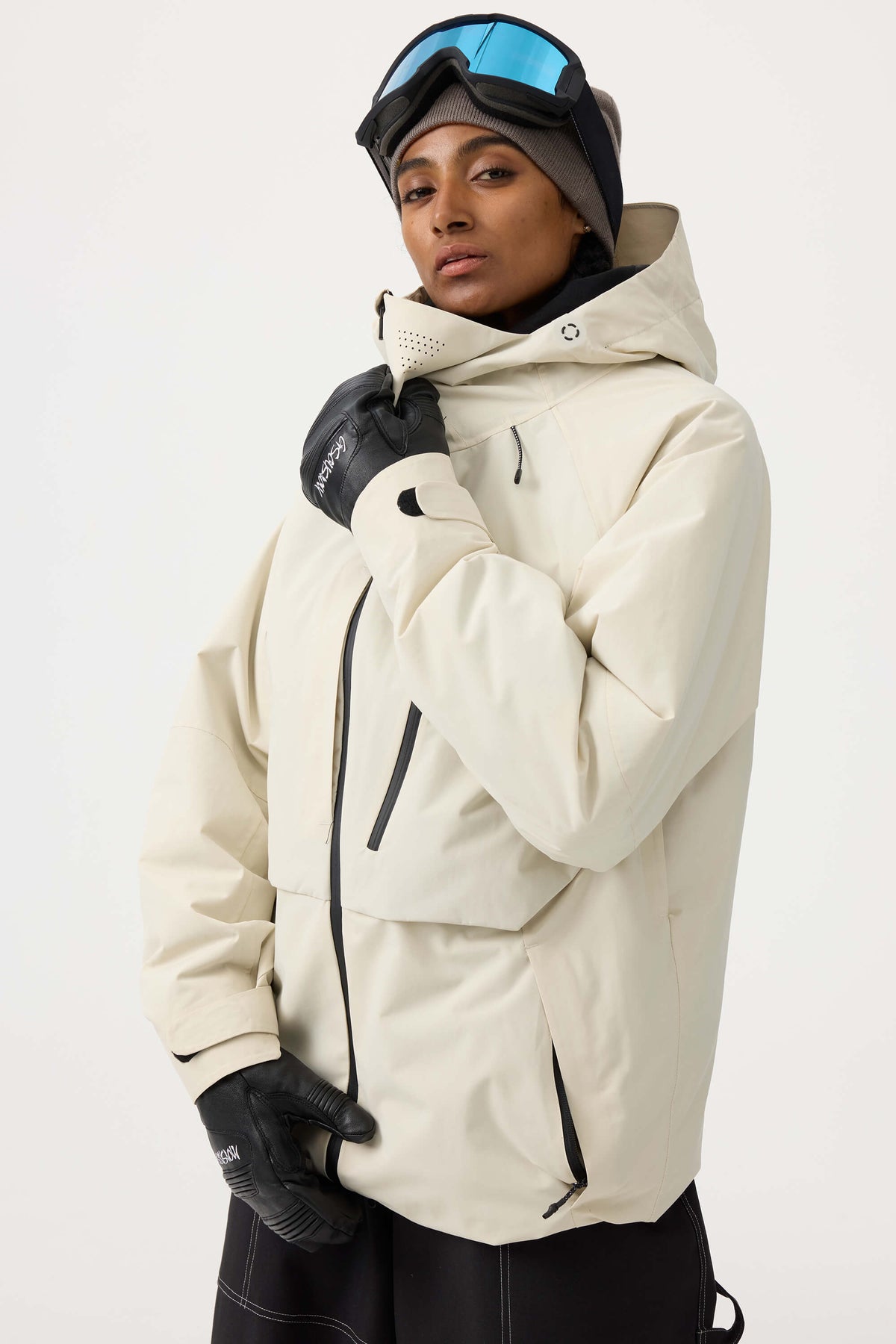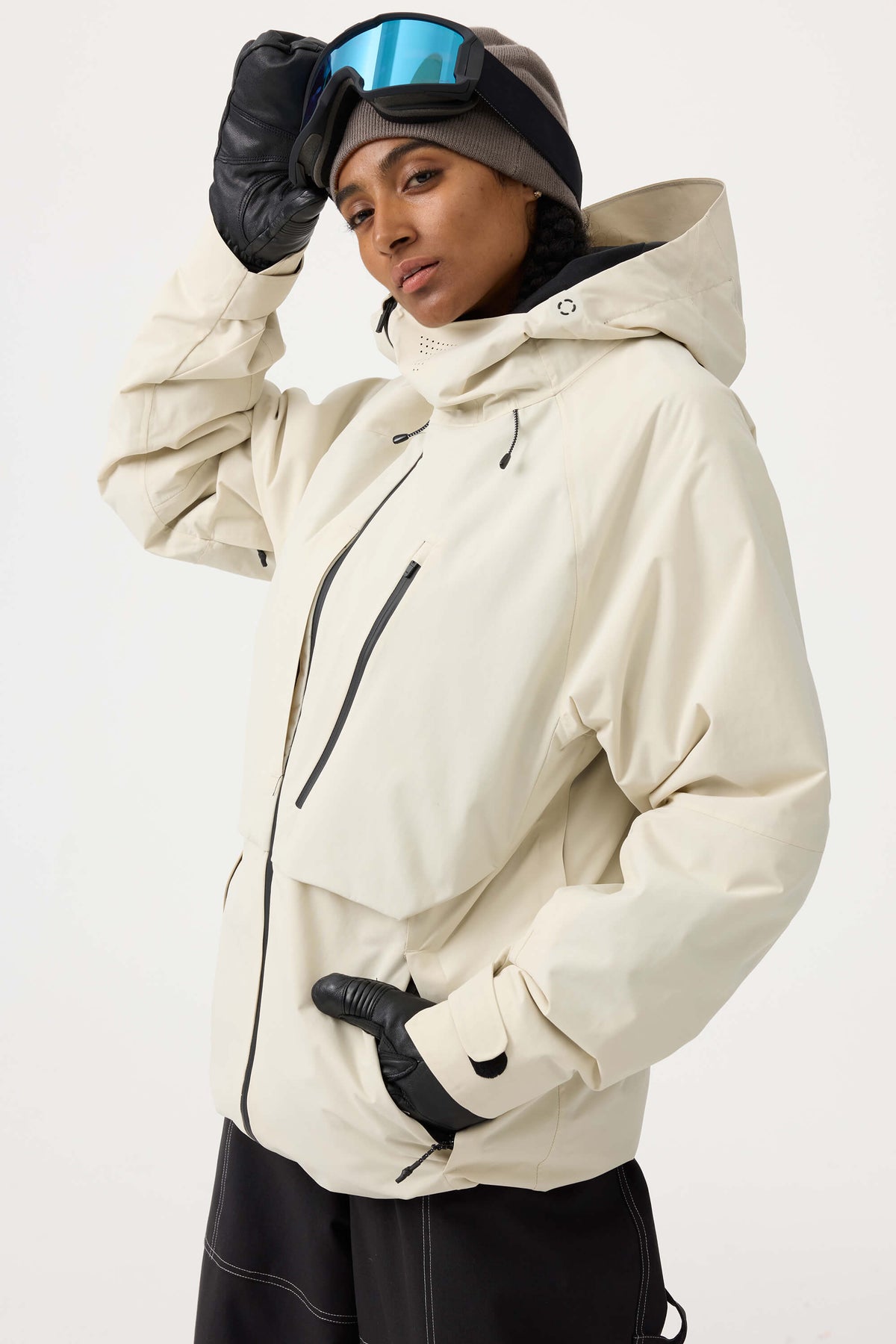 Women's Off White Face Vented Multi-pocket Fully Waterproof Snow Jacket