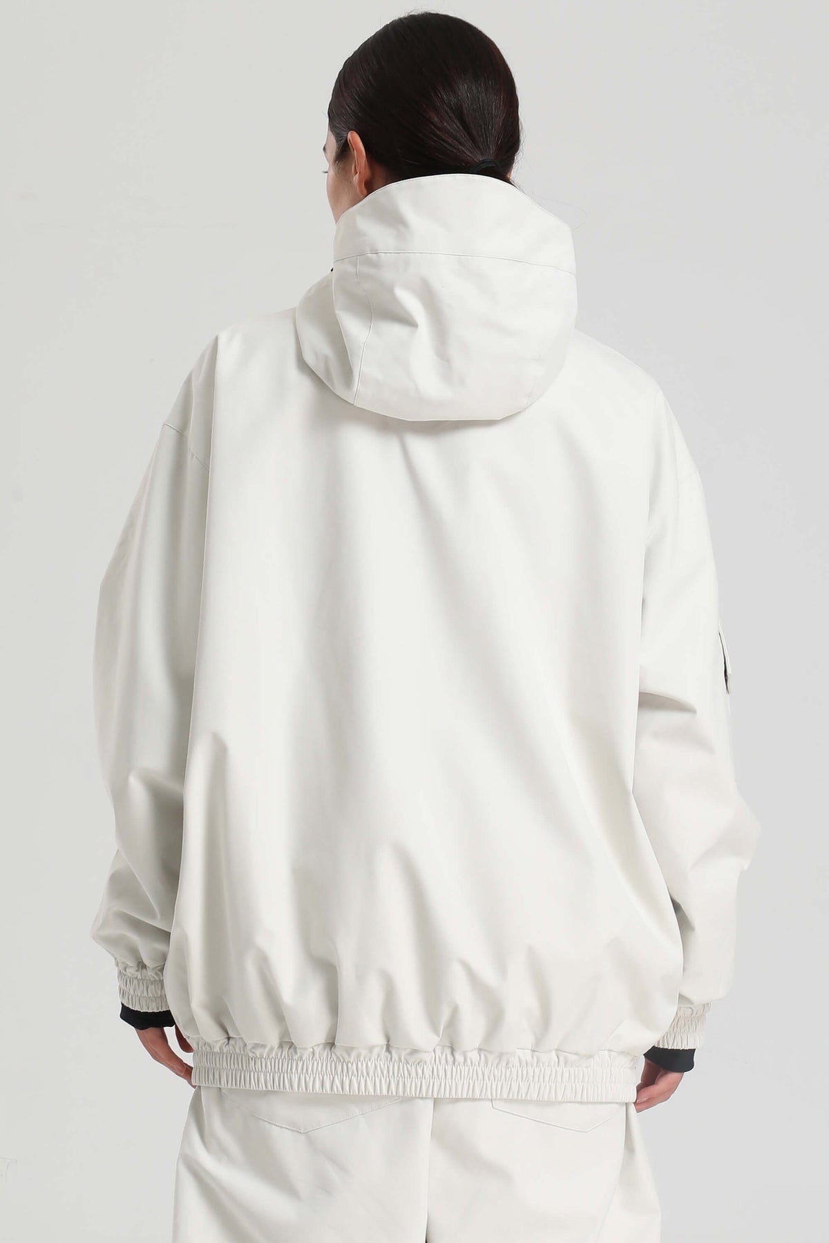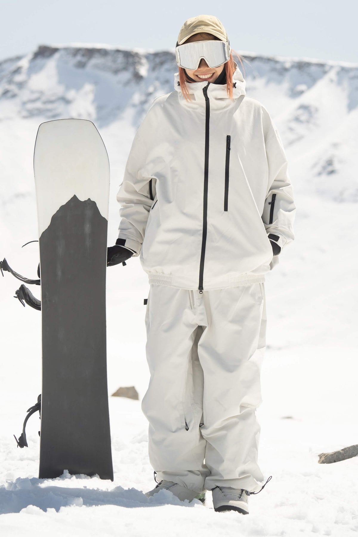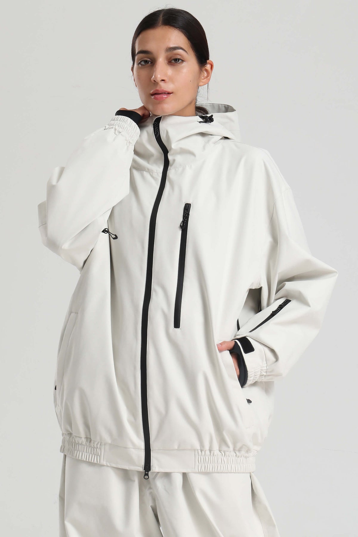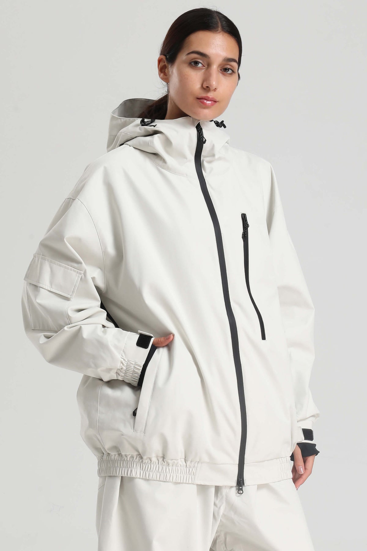 Women's Off-White Washed Effect Minimalist Multi-Pocket Waterproof Snow Jacket