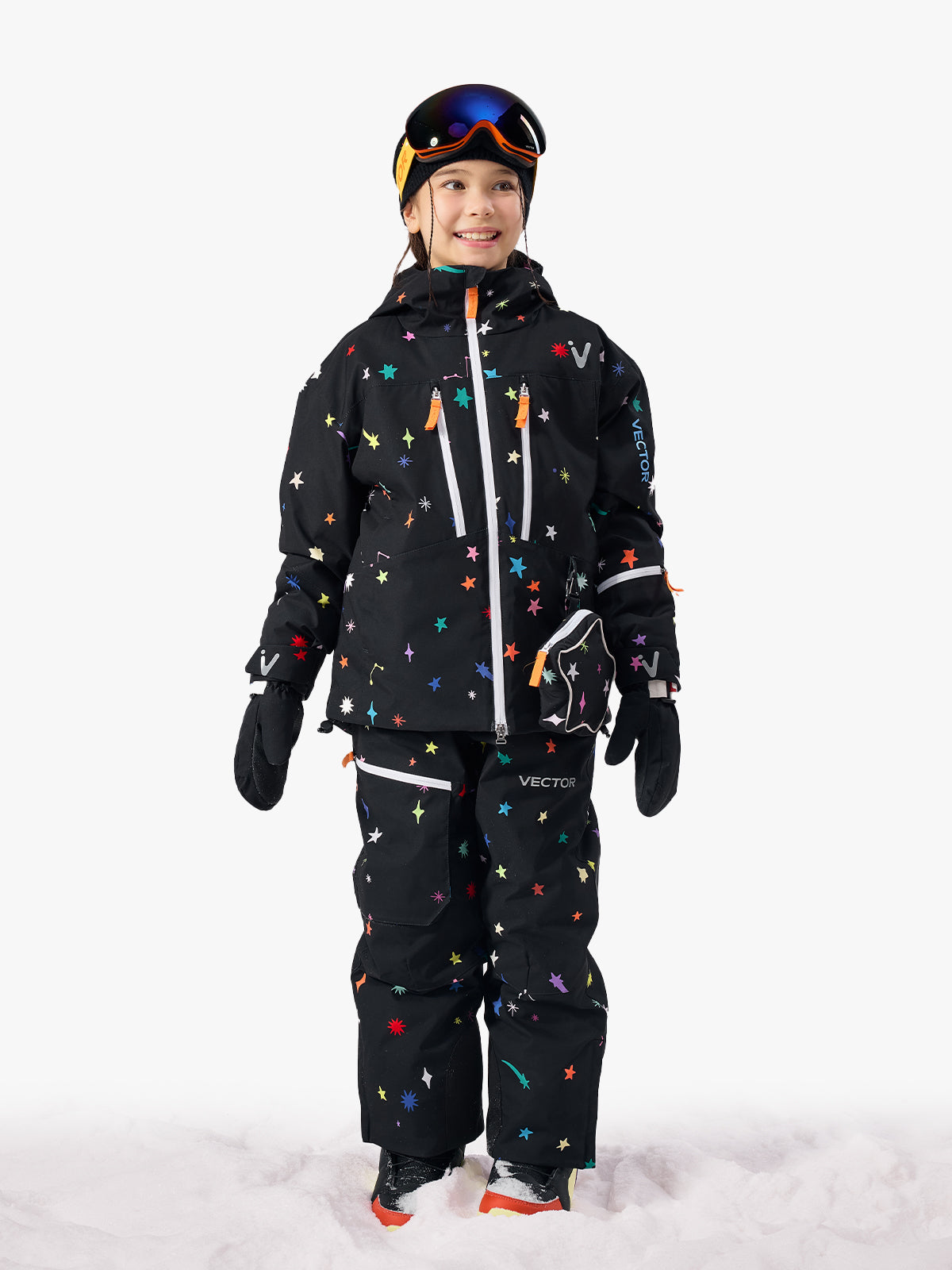 Designed to withstand temperatures as low as -30°C (-22°F), the Kids' Cosmic 2L Anorak Jacket features scientifically zoned insulation with 200g/m² in the body, 180g/m² in the sleeves, and 80g/m² down-like fill in the hood, complemented by a plush 220g/m² high-density fleece lining at the collar and torso for optimal warmth and comfort. Drawing inspiration from celestial themes, the design transforms the ski suit into a "walking mini-universe," allowing children to immerse themselves in a dreamlike world of chasing stars and light, enhanced by a playful detachable star-shaped pouch. Delivering outstanding weather protection, the suit offers 20K waterproofing and 8K breathability, along with a C0 PFC-free DWR coating that effectively sheds snow and moisture.