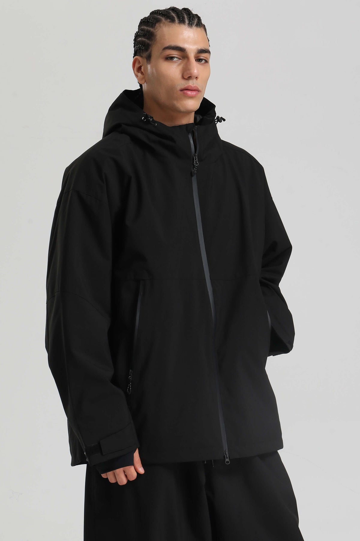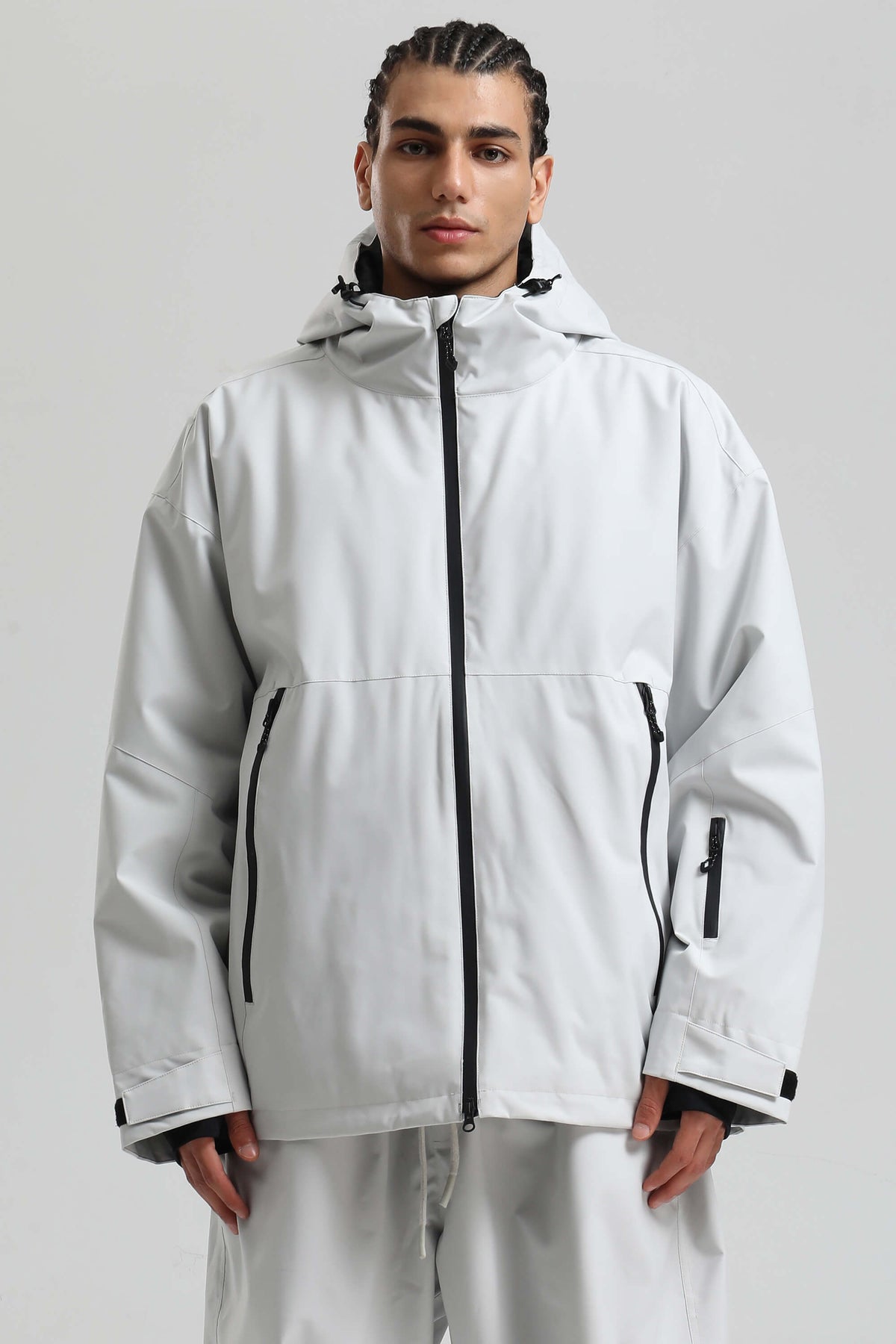 Clean and functional, this oversized snow jacket is built for snow-filled days. The fully seam-sealed shell offers 15K waterproofing and 10K breathability, with YKK zippers and a water-resistant coating for long-lasting protection. Dual underarm vents and a two-way front zip manage airflow, while the chin-high brushed collar and powder skirt keep warmth locked in.