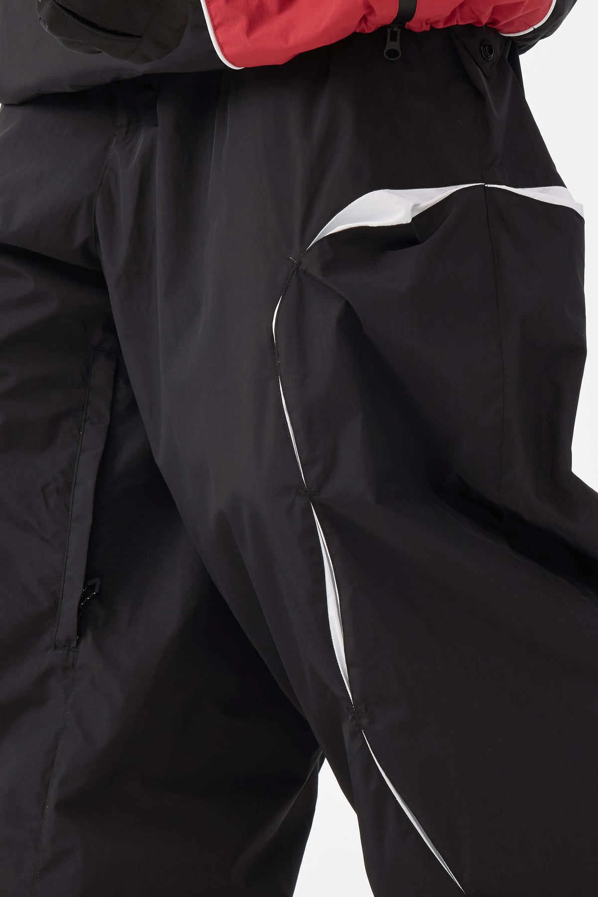 Men's Black Retro Urban Paneled Construction Baggy Snow Pants