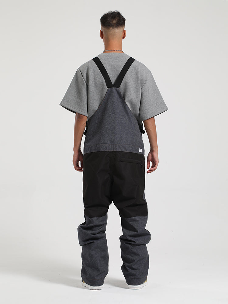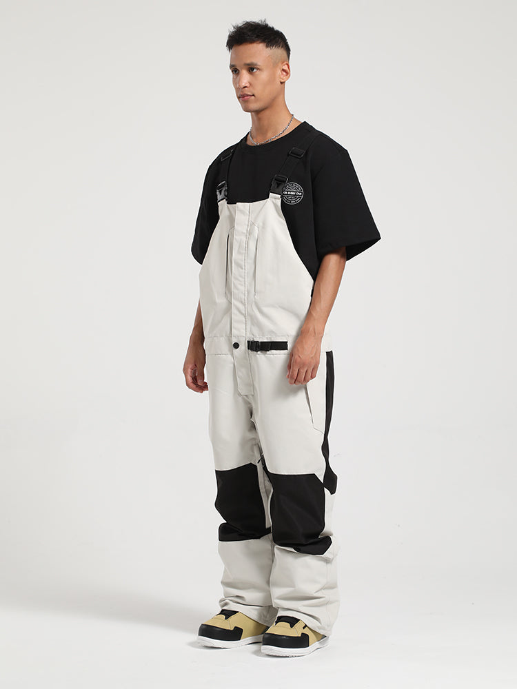 Men's Brown Full Front Zip Snow Bibs with Hook & Loop Closure