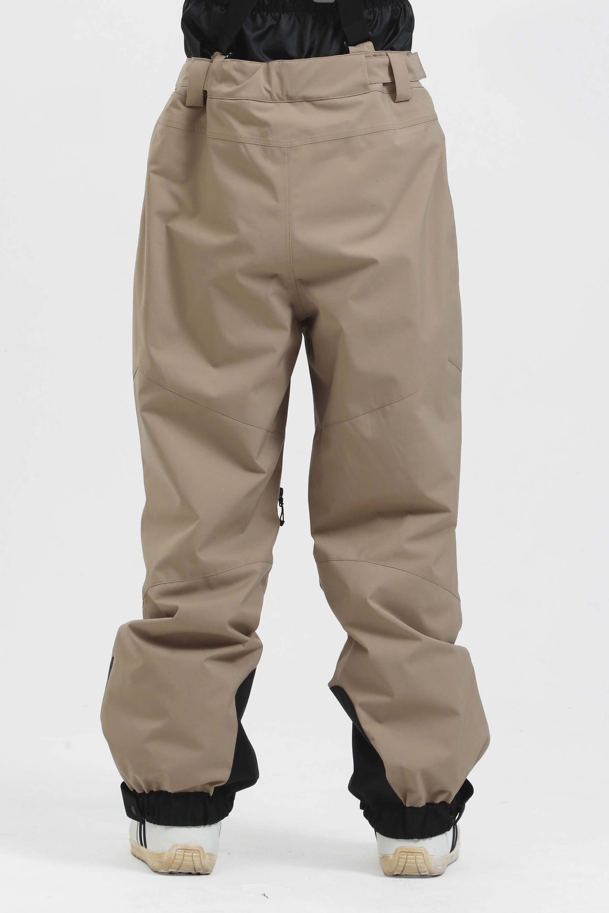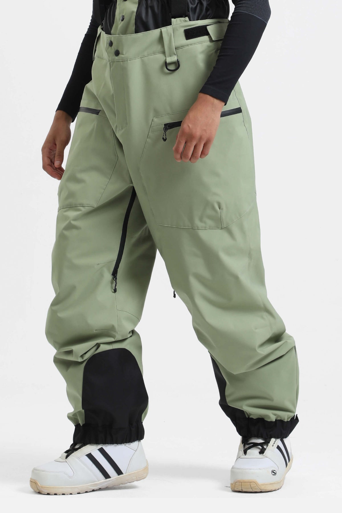 Men's Light Grey Insulated Baggy Snow Pants With Detachable Suspenders