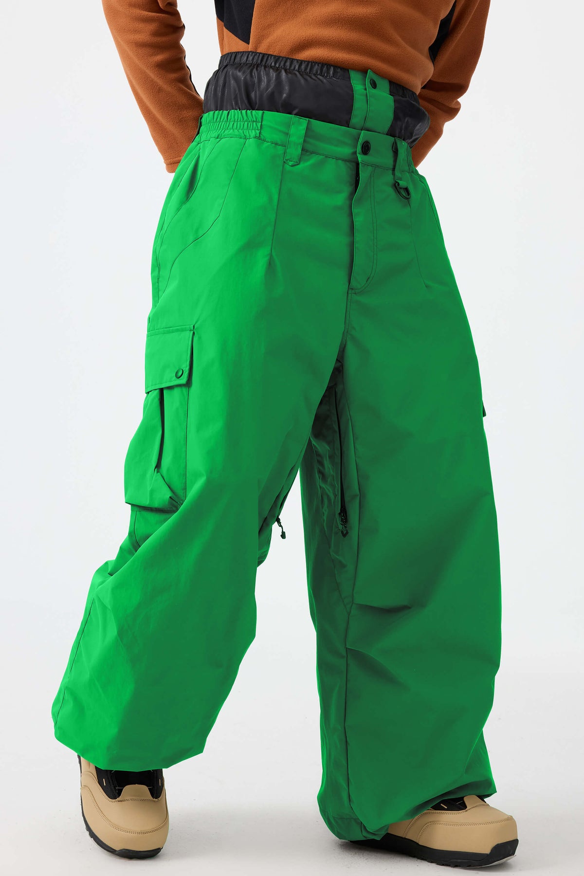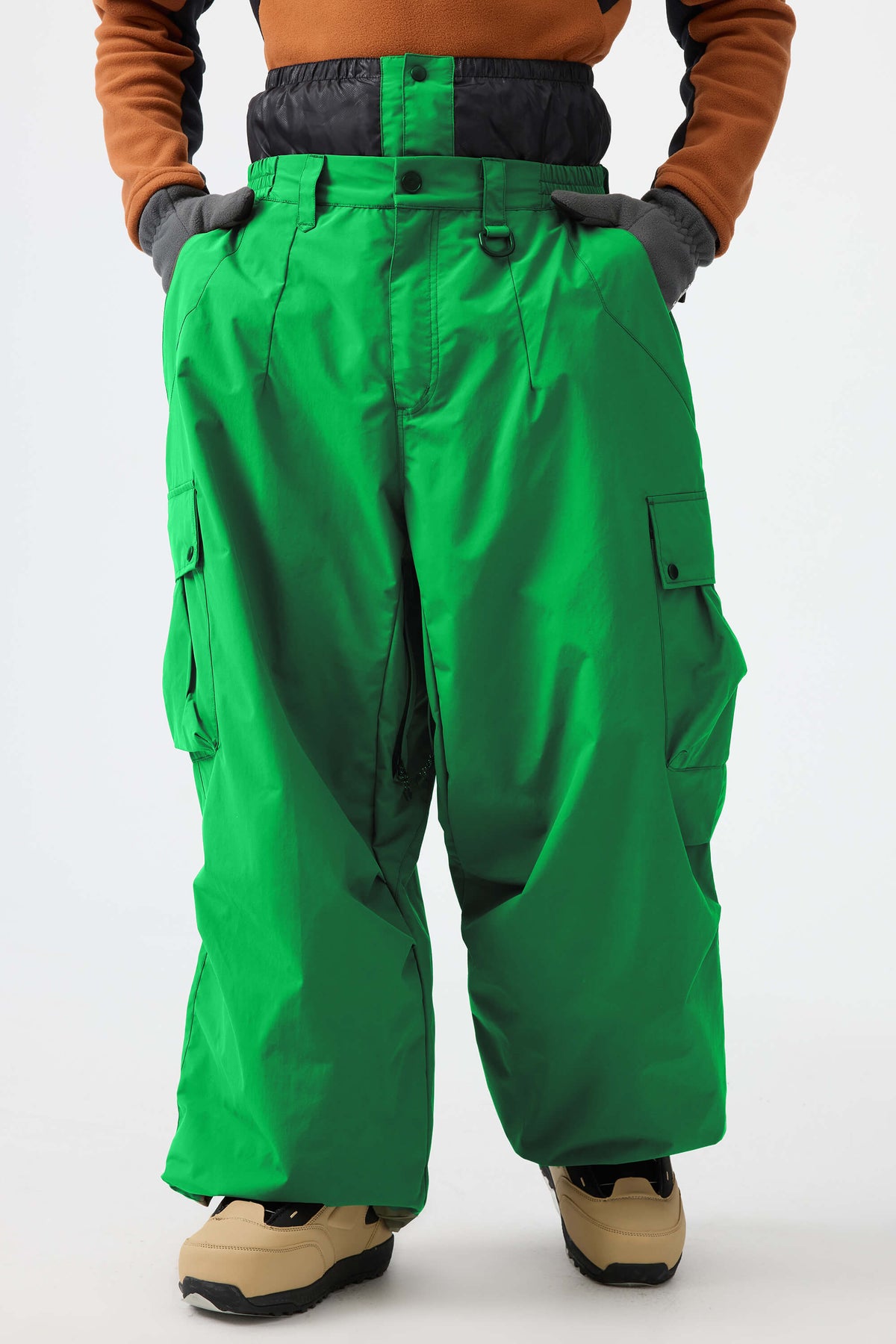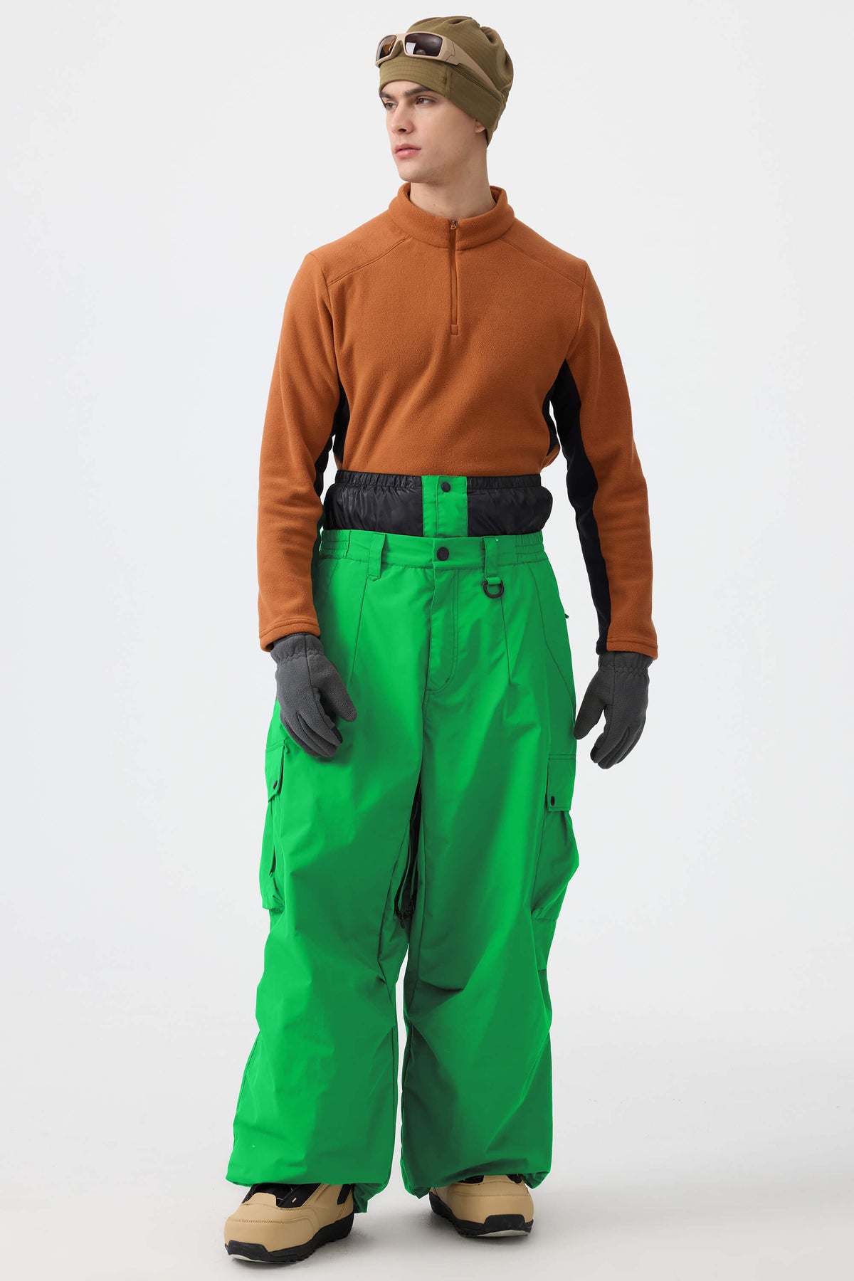 Men's Neon Green Lightweight Inner Leg Vents Baggy Snow Pants