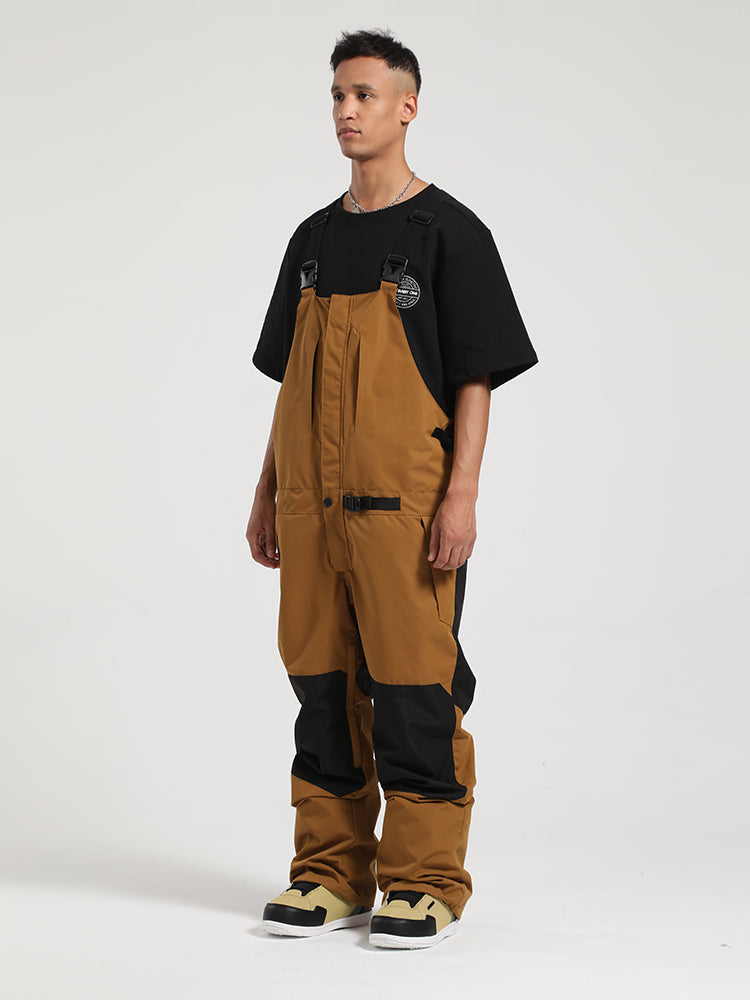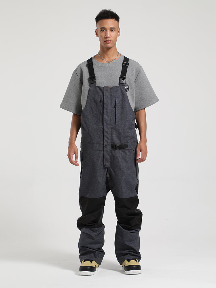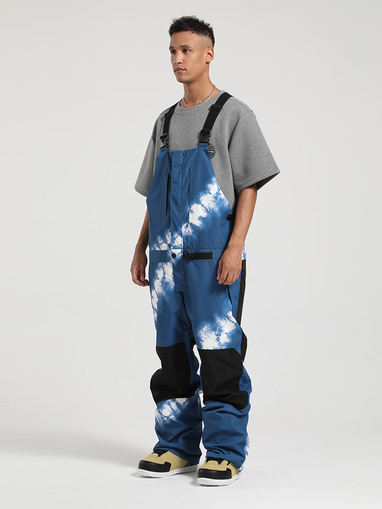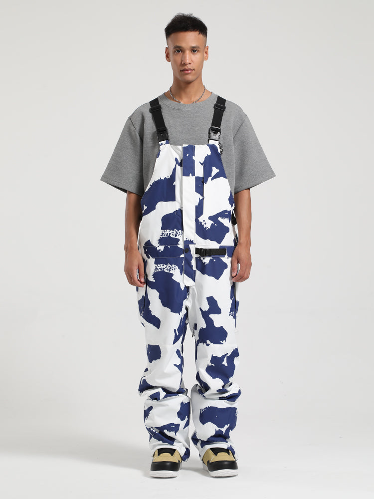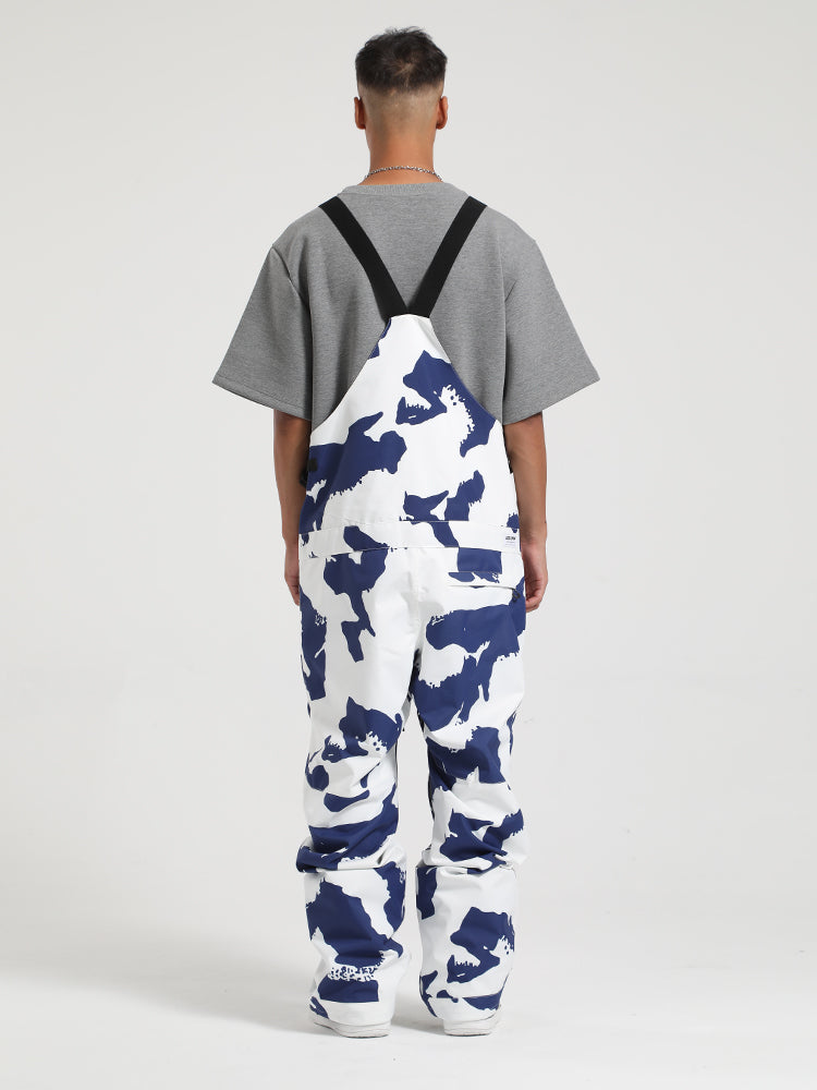 Men's White Full Front Zip Snow Bibs with Hook & Loop Closure