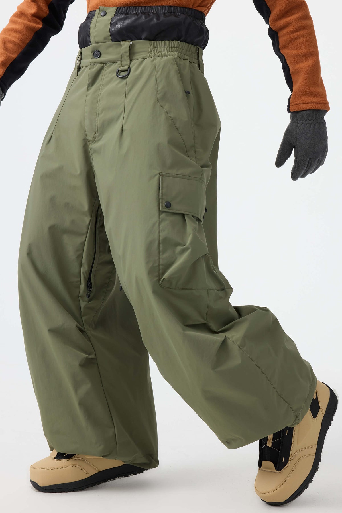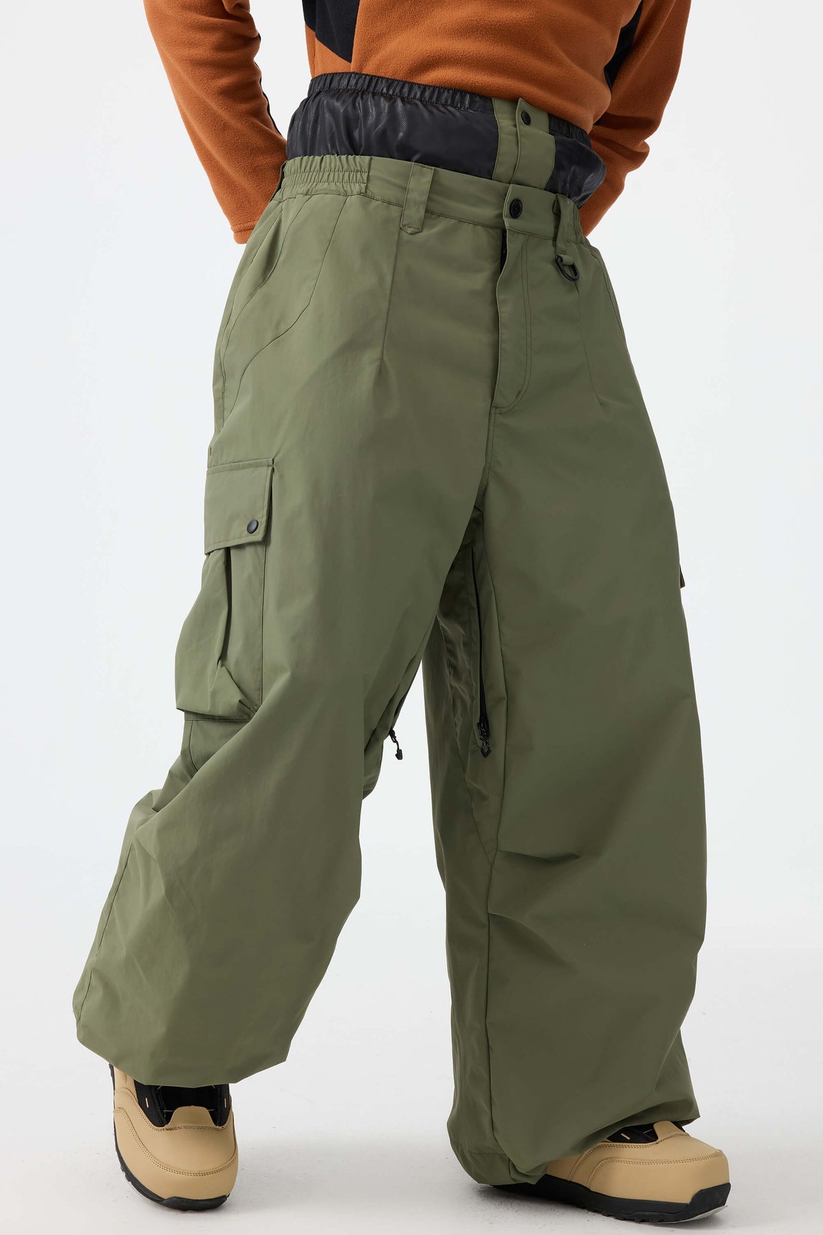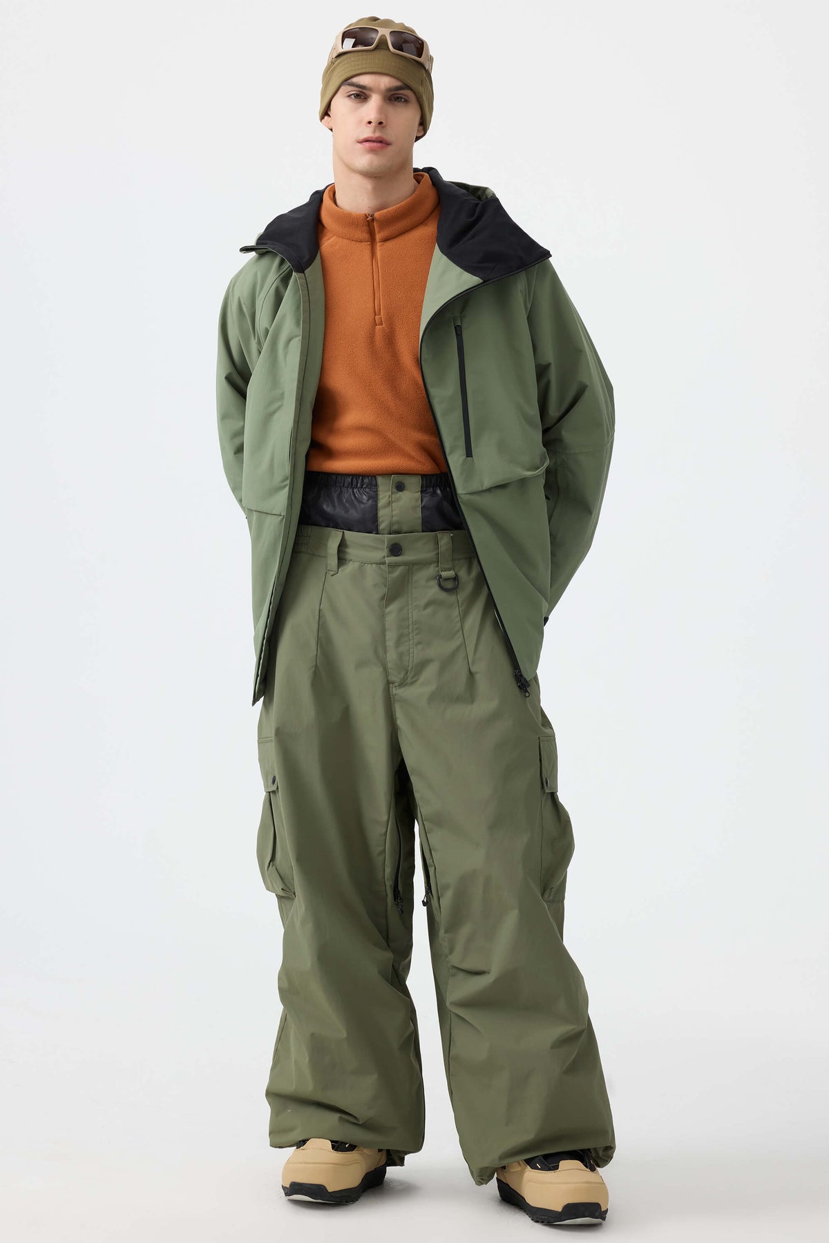 Men's Army Green Lightweight Inner Leg Vents Baggy Snow Pants