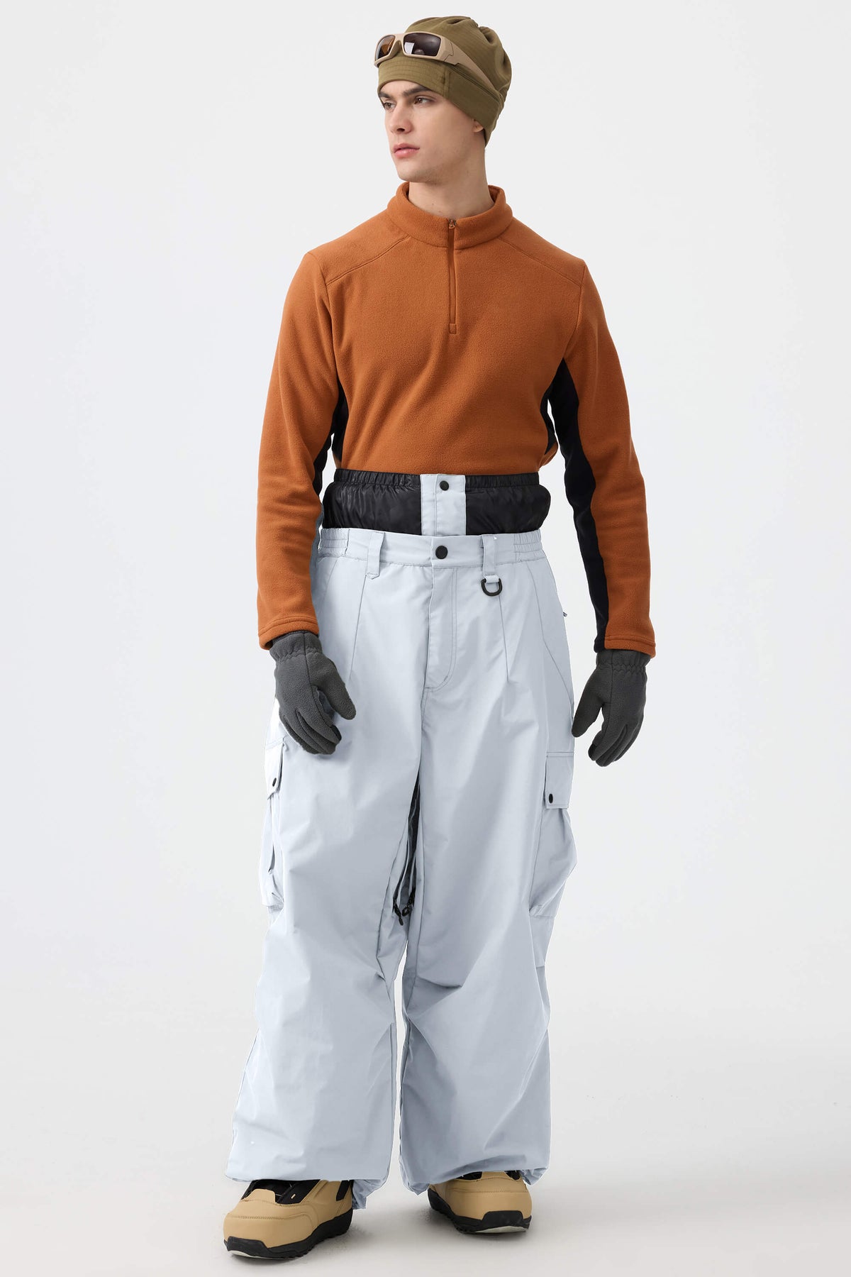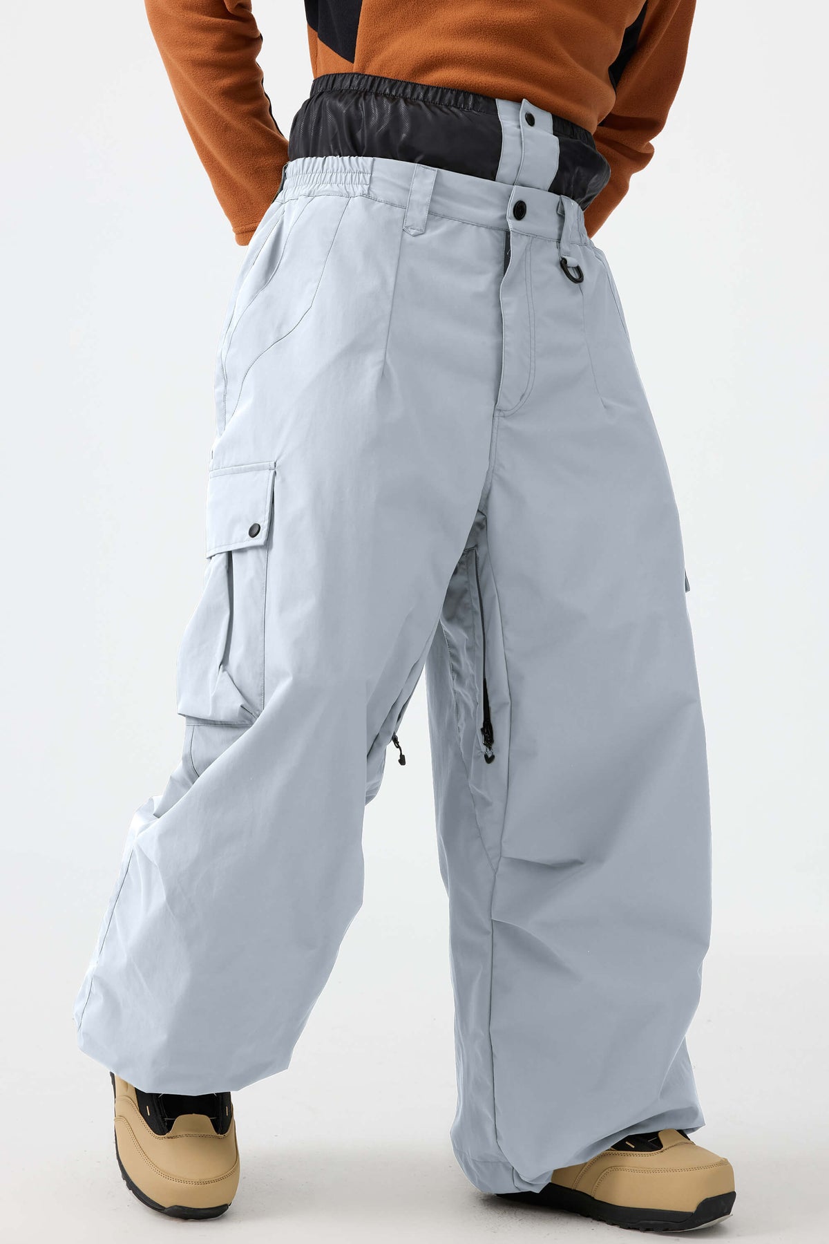 Men's Grey Lightweight Inner Leg Vents Baggy Snow Pants