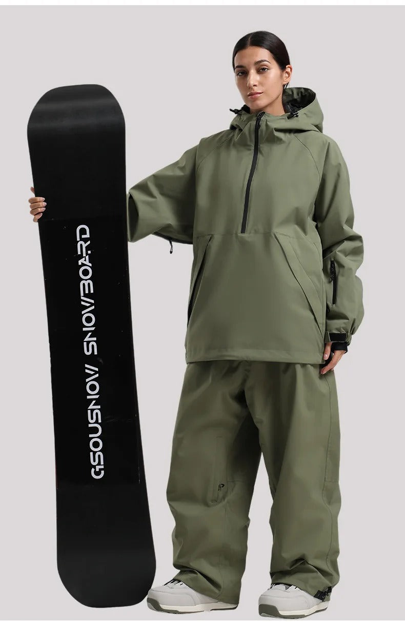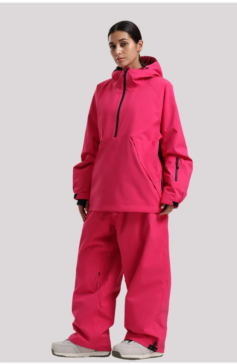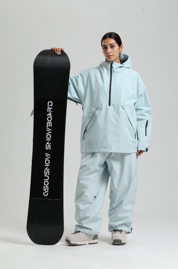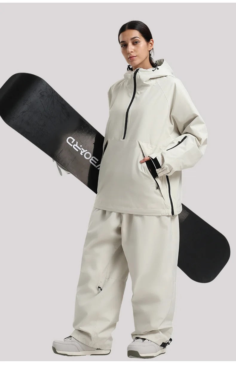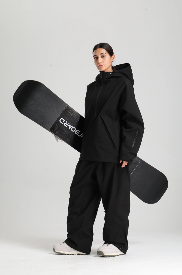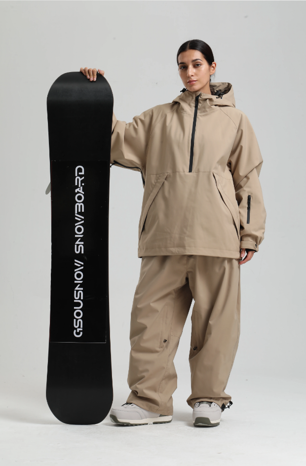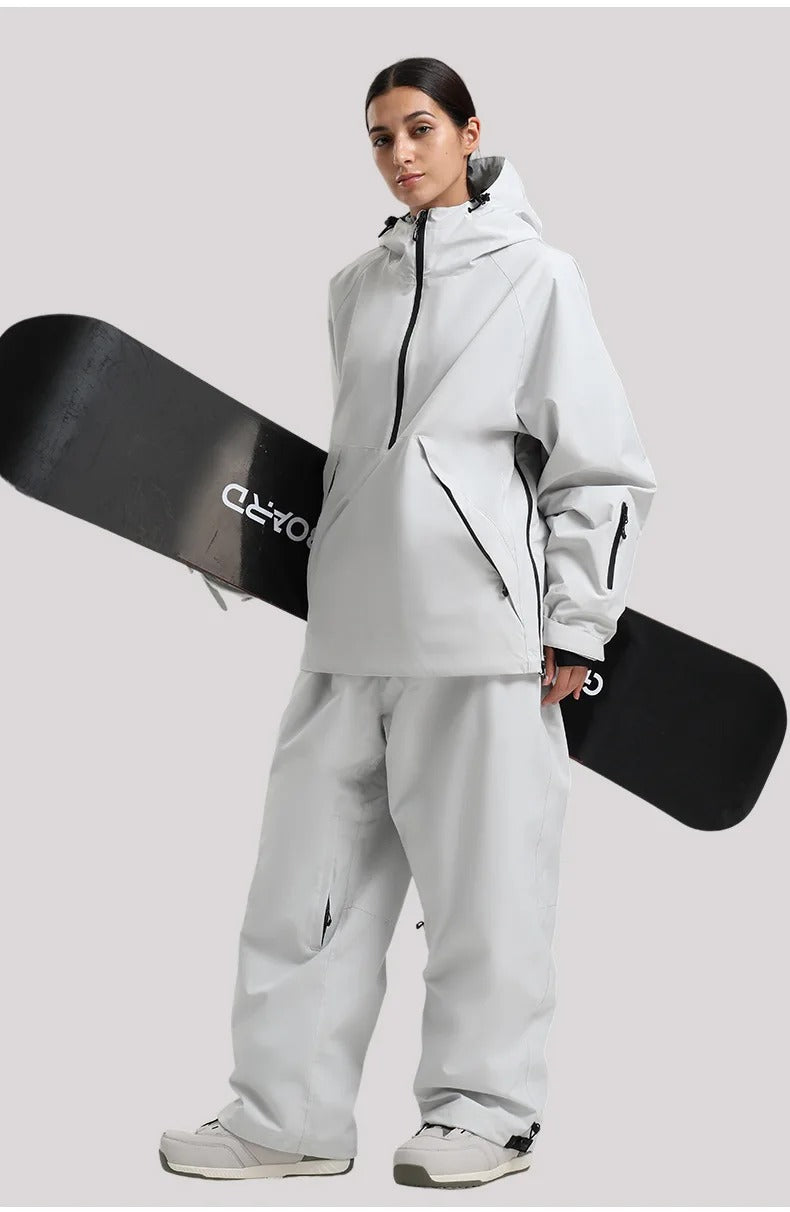 Built for all-day runs in deep snow, this oversized snow anorak and pants provide peak performance and protection. Featuring a 15K waterproof and 10K breathable shell, it is engineered to keep you dry and comfortable in challenging conditions. The construction includes sealed YKK zippers and a durable water-resistant coating for maximum defense against the elements. Dual underarm vents and a two-way front zip allow for precision adjustable airflow, while a fleece-lined high collar, extended hood brim, and integrated powder skirt ensure you remain mountain-ready. With multiple secure pockets, you have enough storage for all your essentials during long sessions on the slopes.