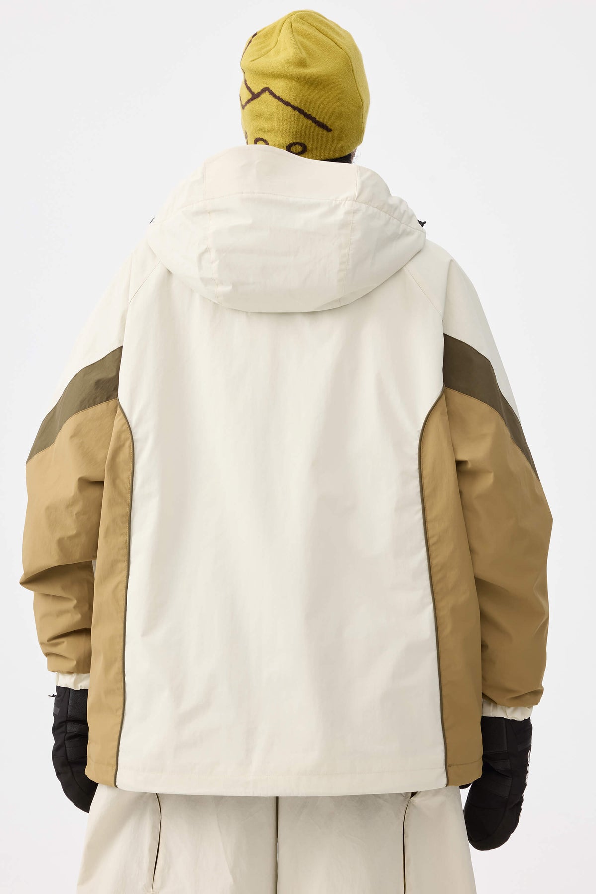 Women's Beige Retro Urban Colorblock Snow Anoraks