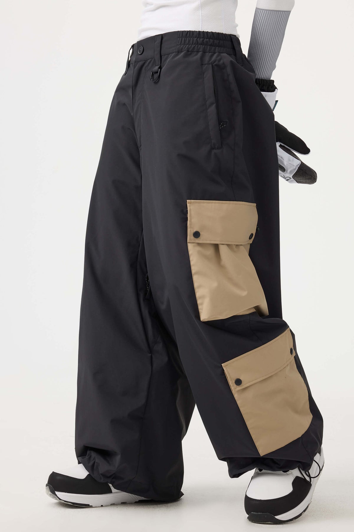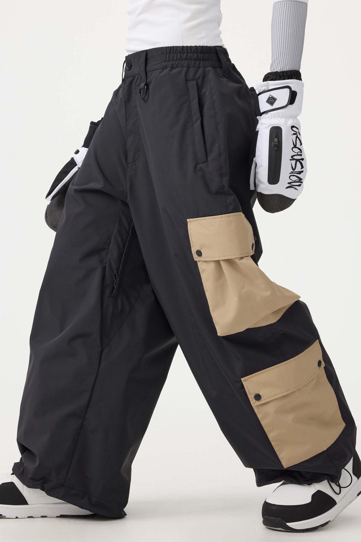 Women's Black Baggy Multi-Pocket Color-Block Snow Pants