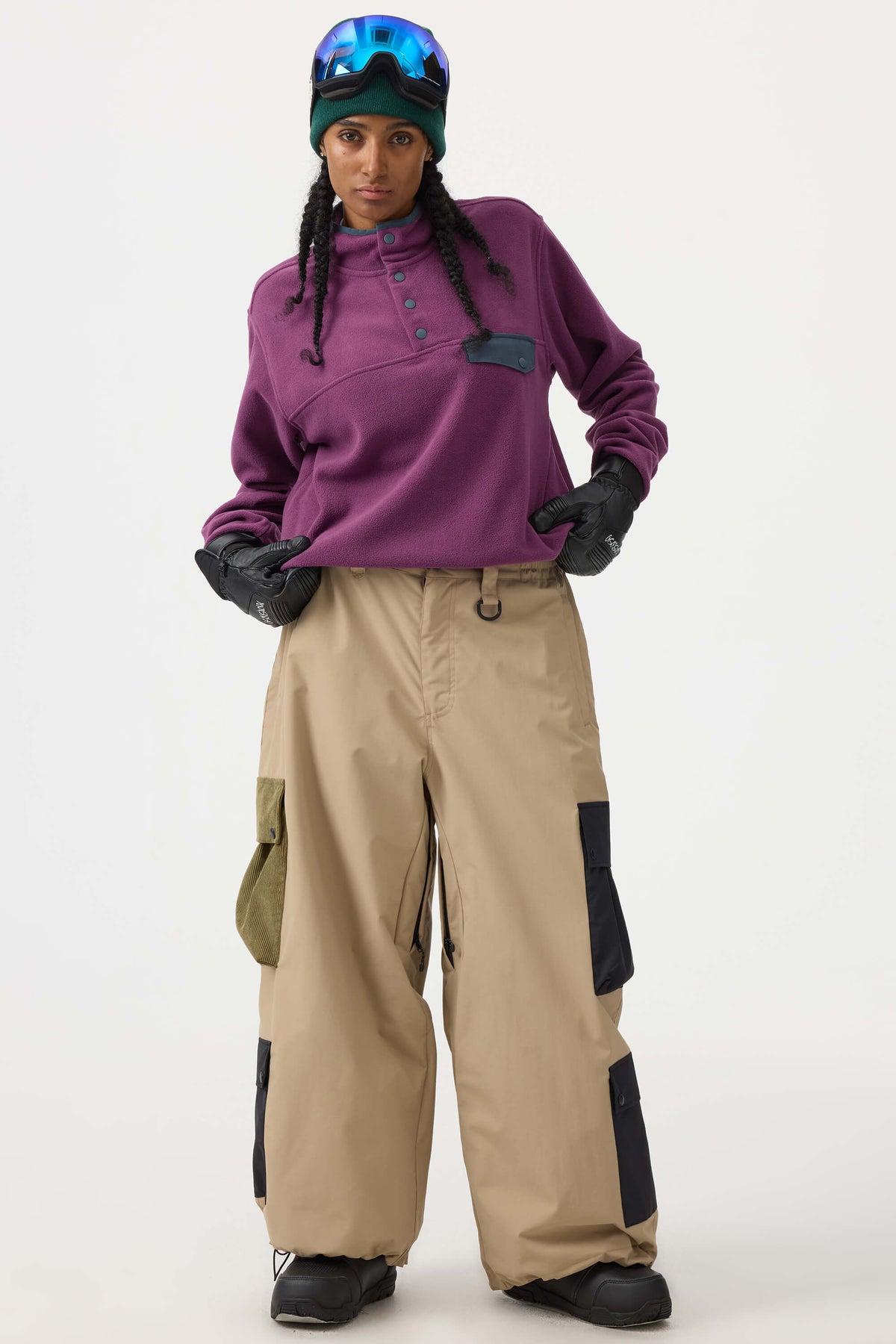 Crafted with advanced nylon weaving and a water-resistant coating, these pants offer superior abrasion resistance and long-lasting durability. Featuring a next-gen silicone anti-slip powder skirt and multiple pockets, they combine improved practicality with a relaxed, loose fit.