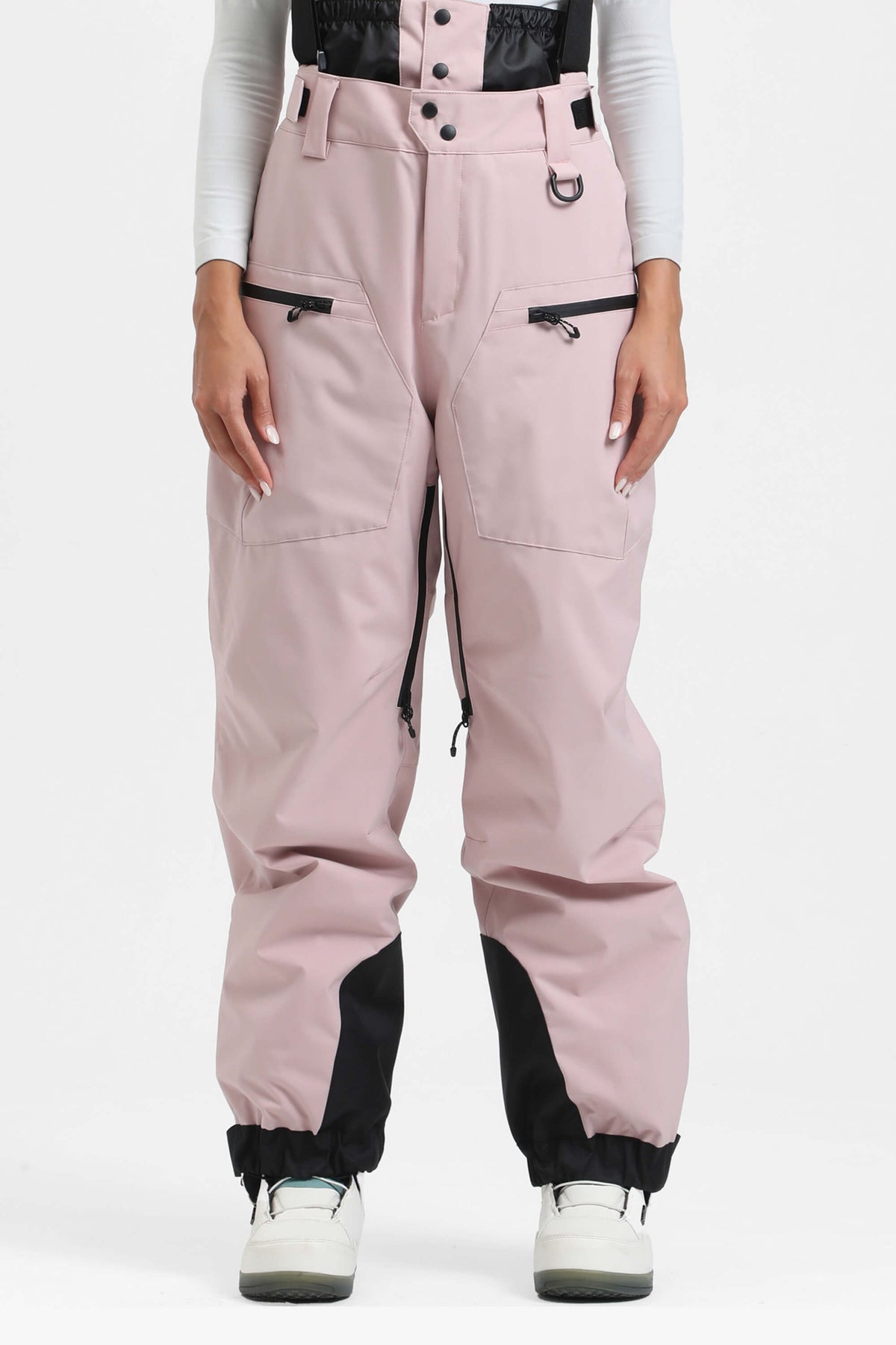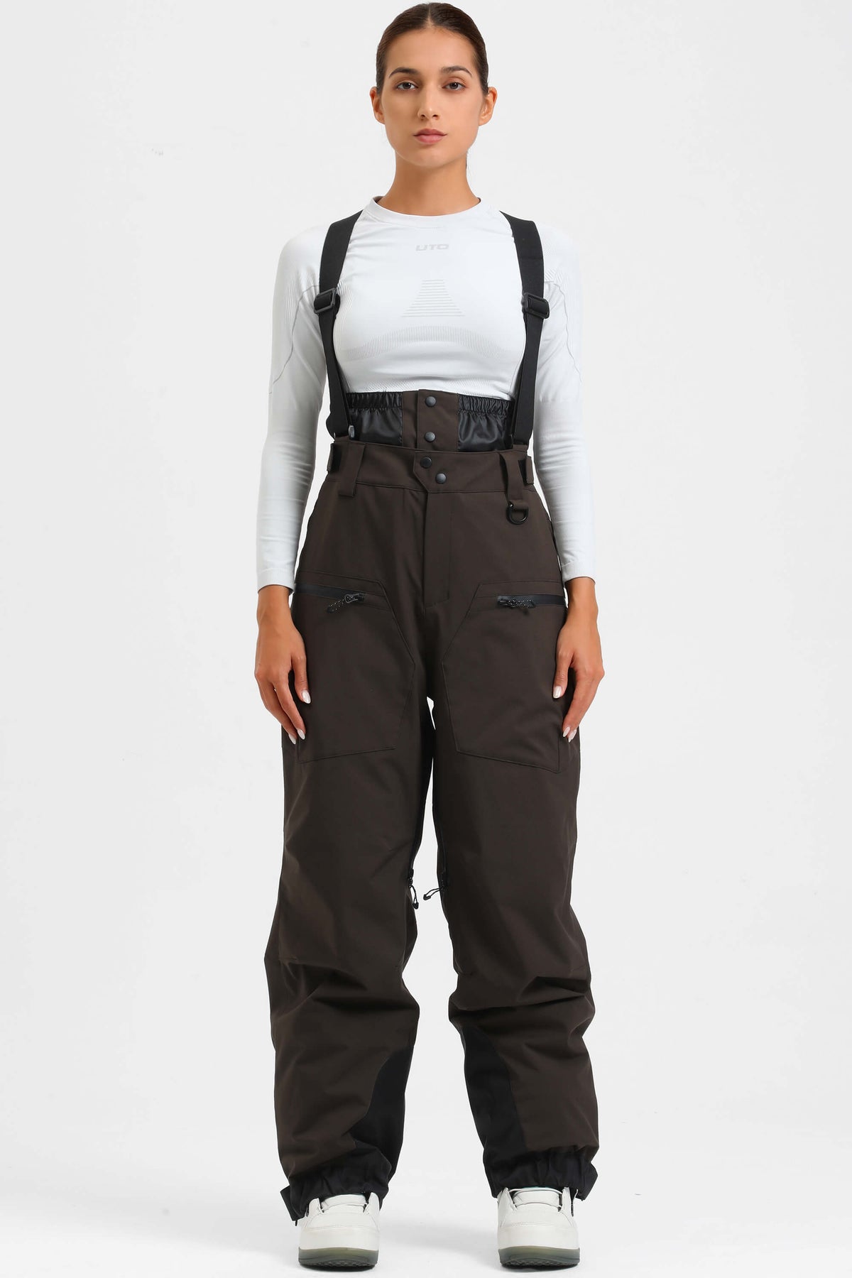 Women's Black Insulated Baggy Snow Pants With Detachable Suspenders