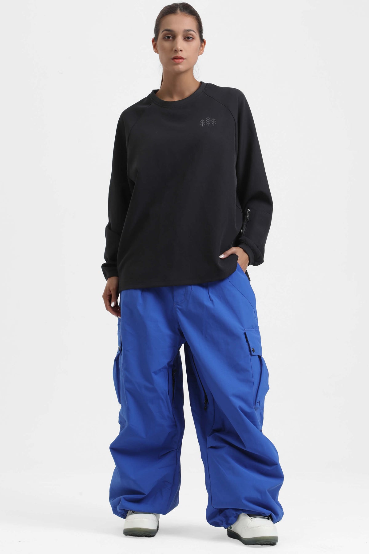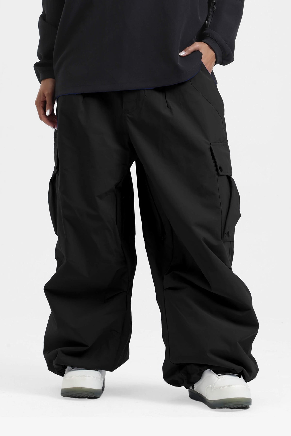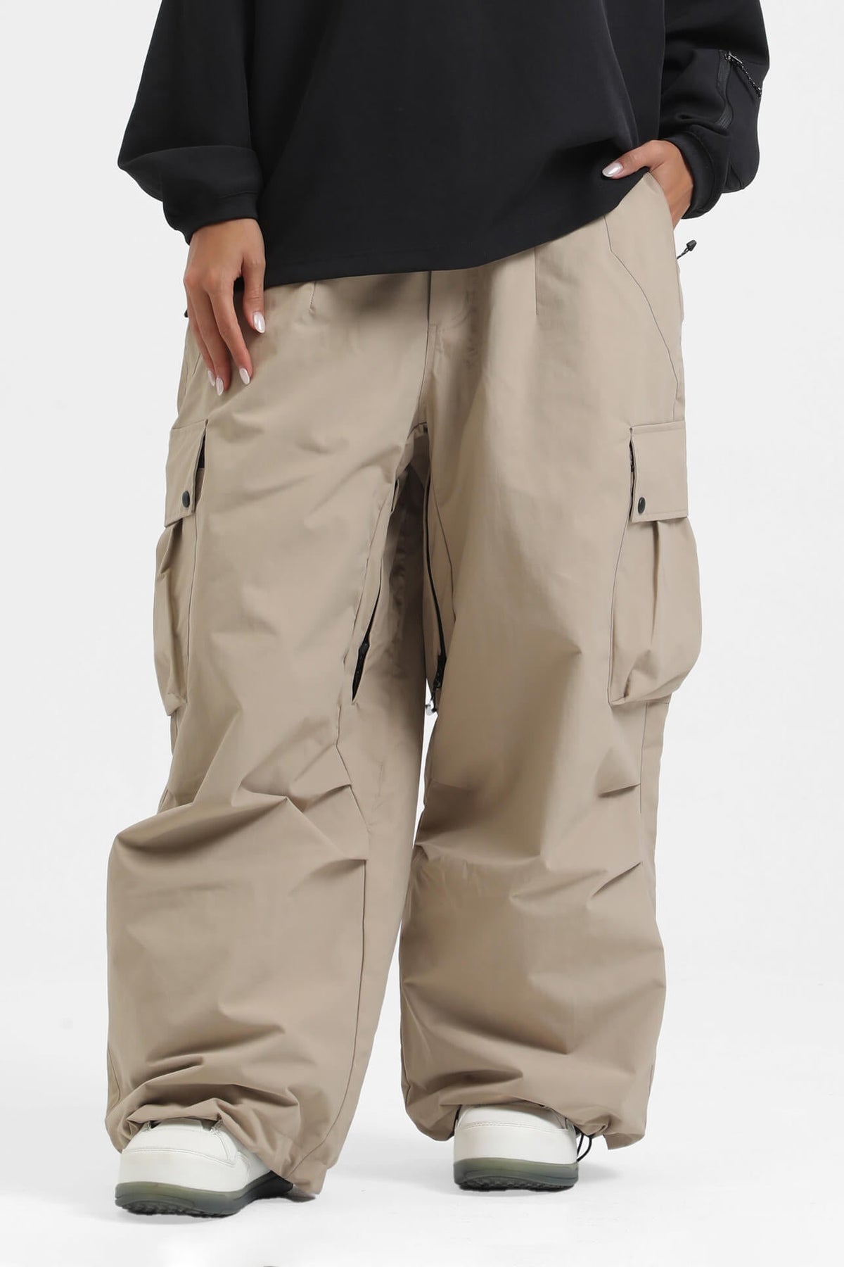 Waterproof and breathable, designed for skiing and snowboarding. The inside thigh features zippered vents to quickly expel excess heat during exercise. Equipped with multiple pockets, it has excellent loading capacity. The loose fit makes it a great choice for those seeking both style and flexibility.