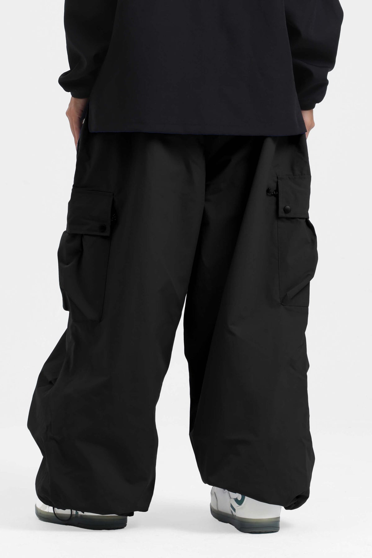 Women's Black Lightweight Inner Leg Vents Baggy Snow Pants